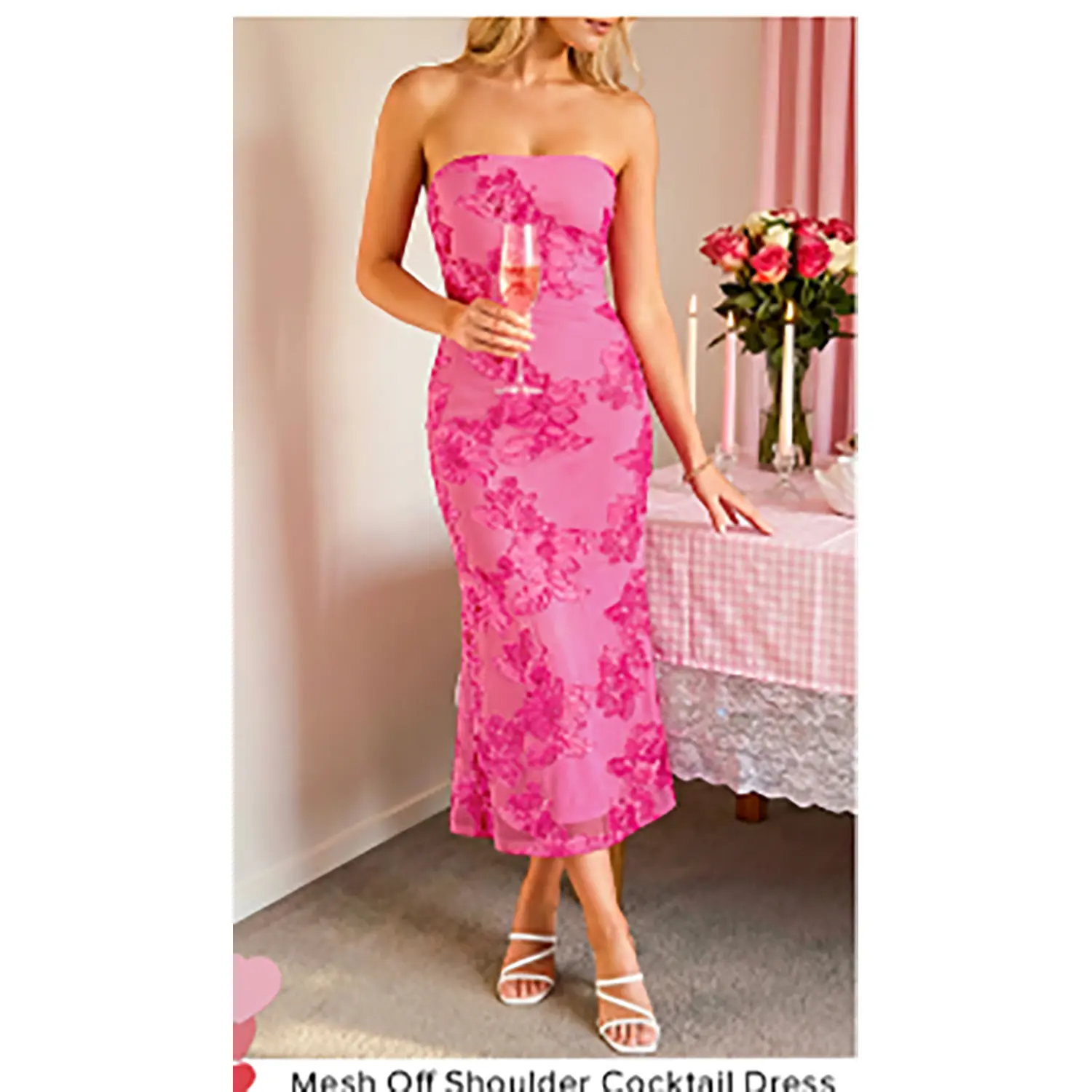 ·Design: Sleeveless dresses for women, tube top dresses for women, midi dresses, sexy dresses, formal dress, strapless dress, floral dress, bodycon dress. This elegant off shoulder boho dress features a delicate floral mesh design that flatters your figure while making a striking statement, radiating an air of graceful femininity