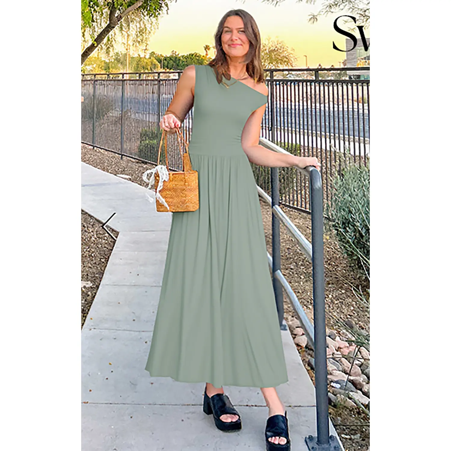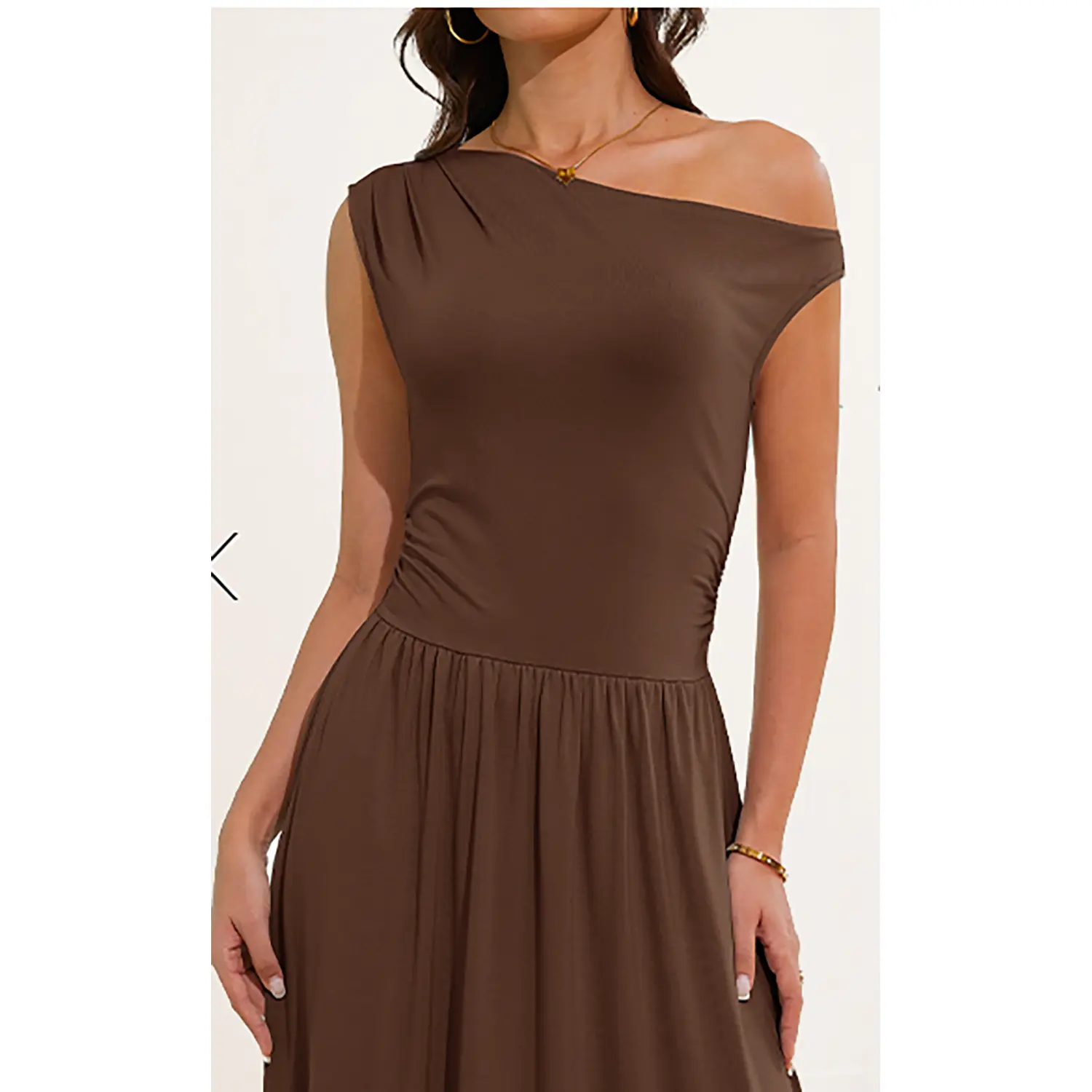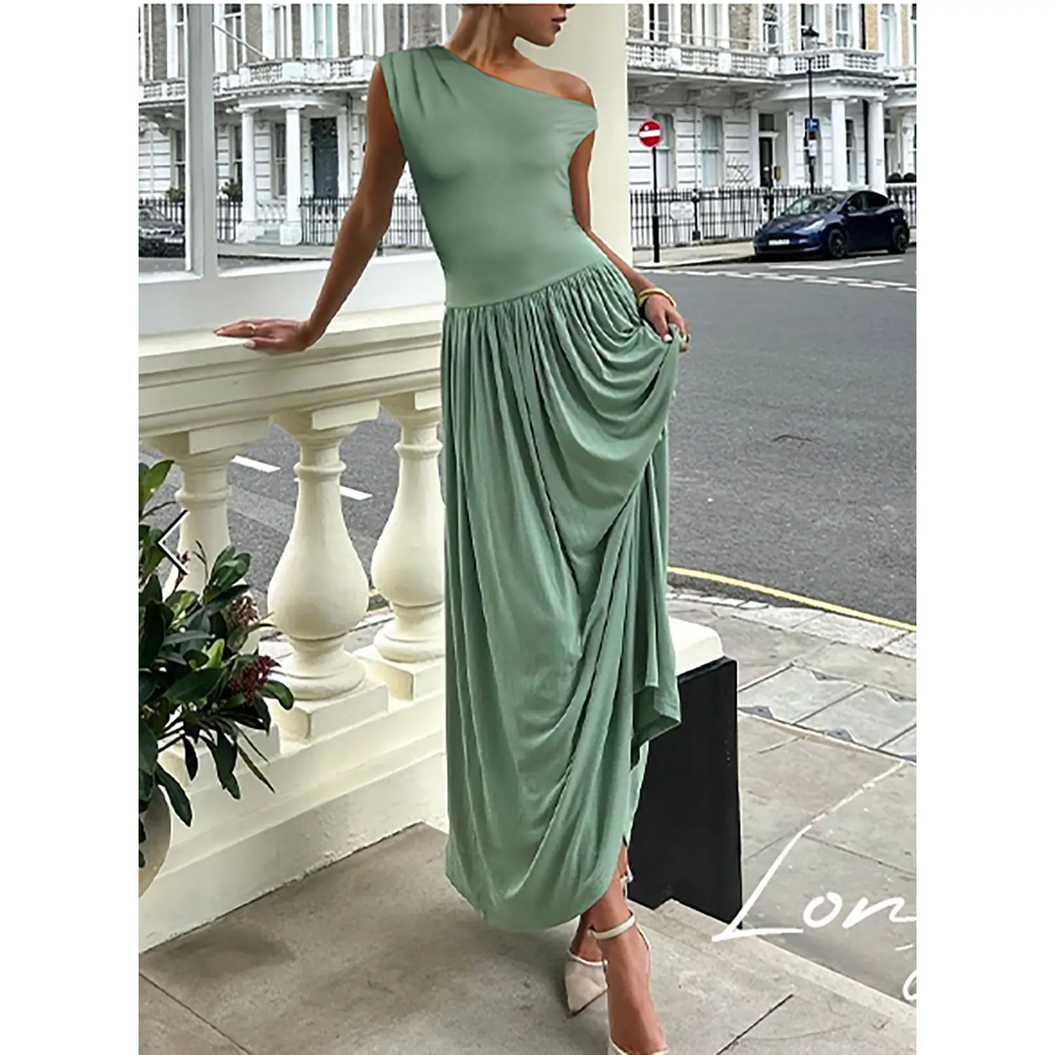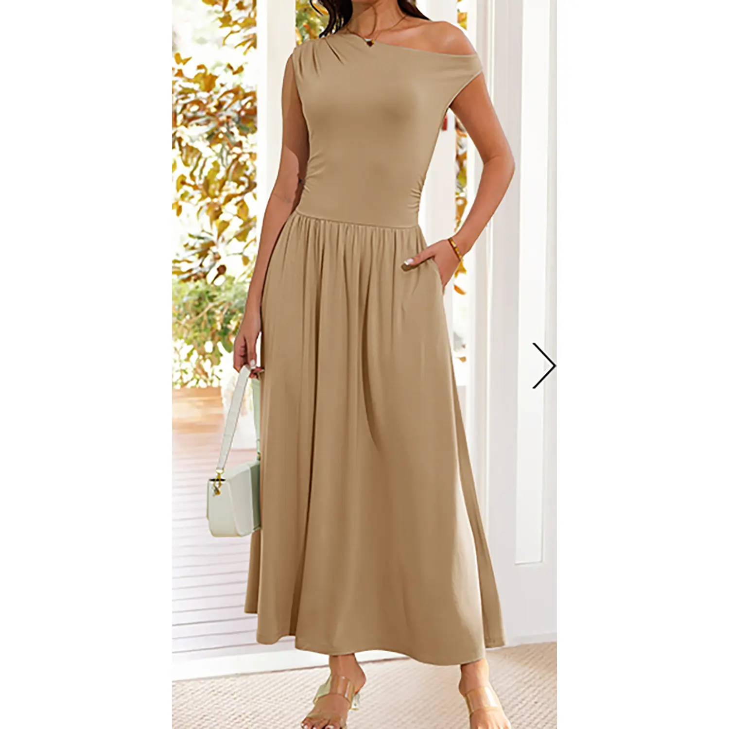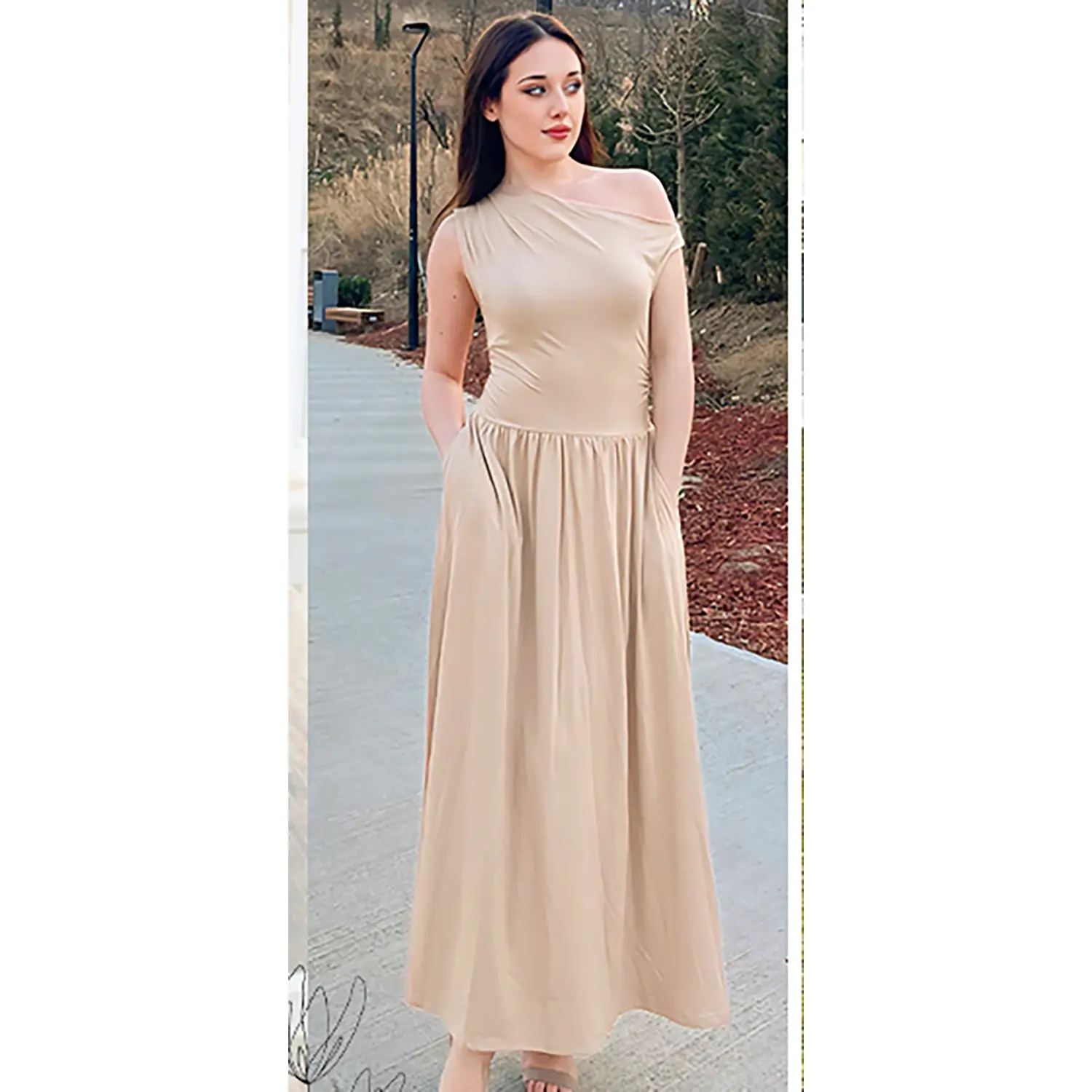 Ā·Features: Casual dress, maxi dress, slim one shoulder, sleeveless dress, solid color, stretch, two side pockets, a-line style, pleated dress, swing flowy dress, formal dress, summer dress. A combination of sophistication and romance