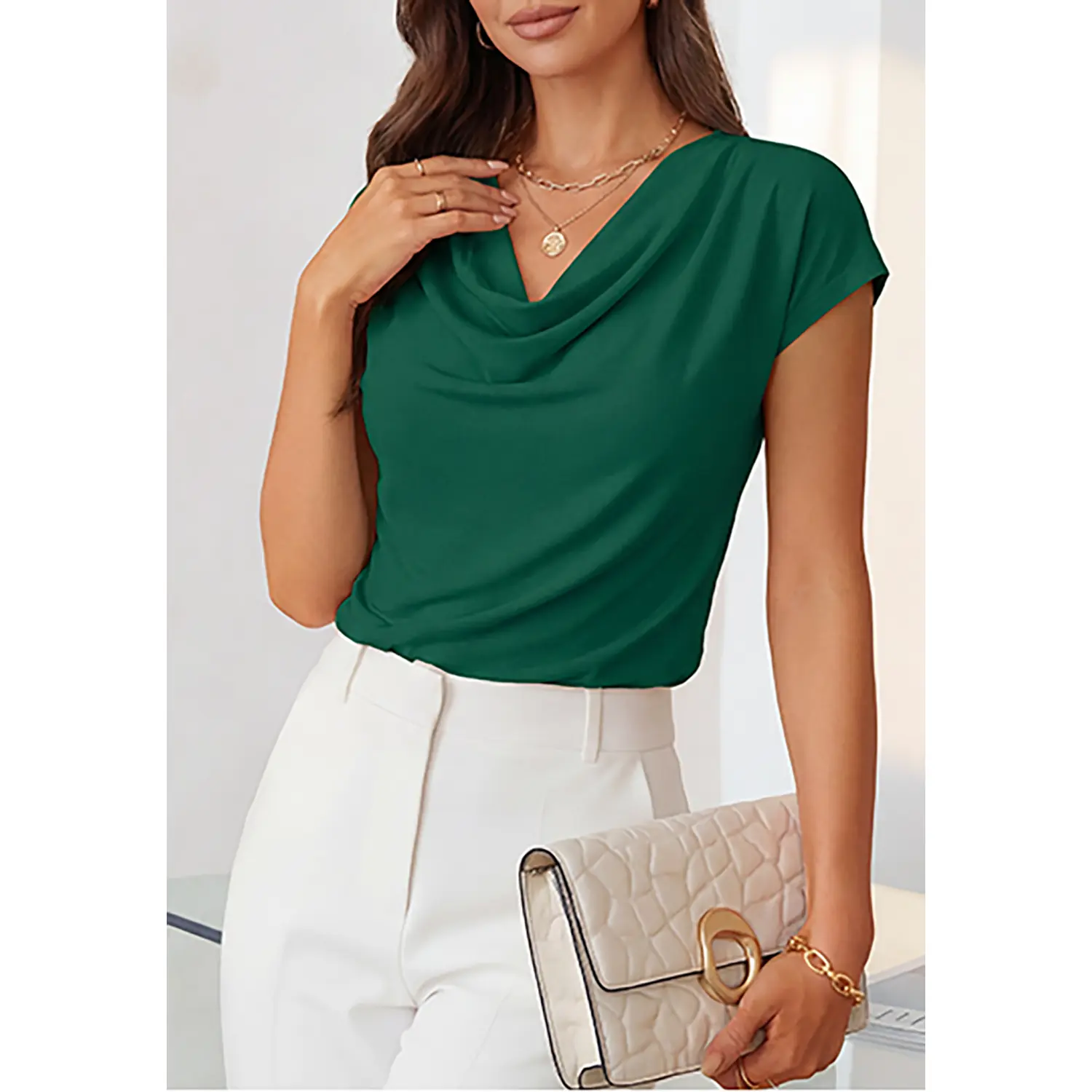 ·Design: Tops for women trendy, going out tops, summer tops, business casual tops for women, cowl neck tops for women, womens short sleeve tops, cap sleeve tops for women. This cute top effortlessly showcases your silhouette. The soft, draping cowl neckline beautifully accentuates your collarbone curves, while the cap sleeves cleverly highlight your shoulder contours for an exquisitely refined look