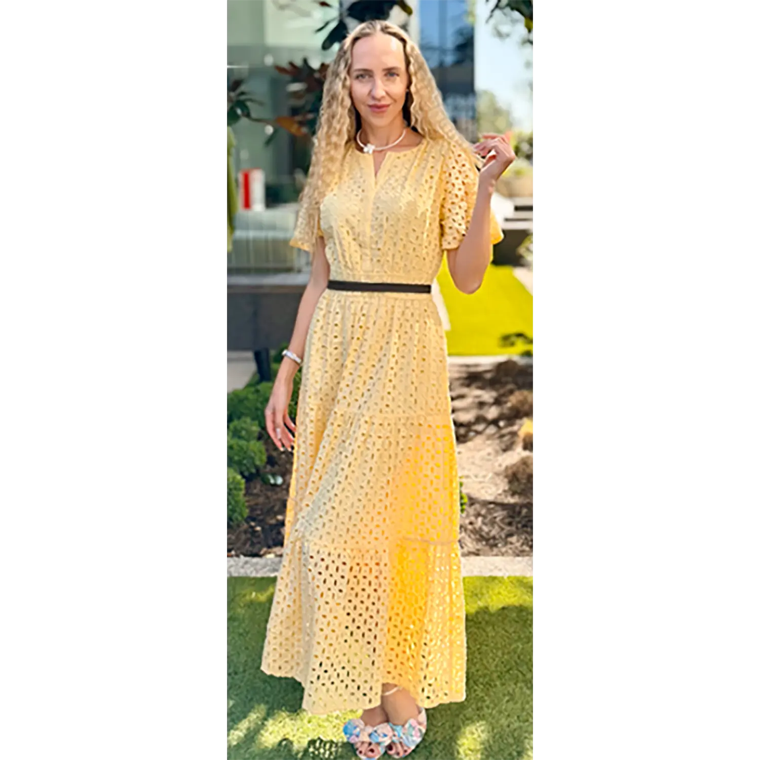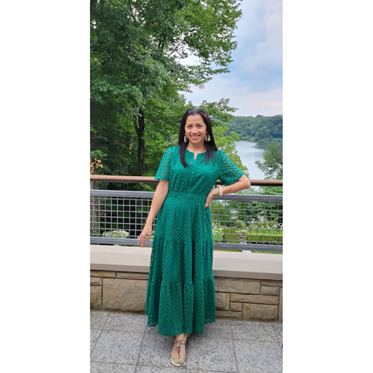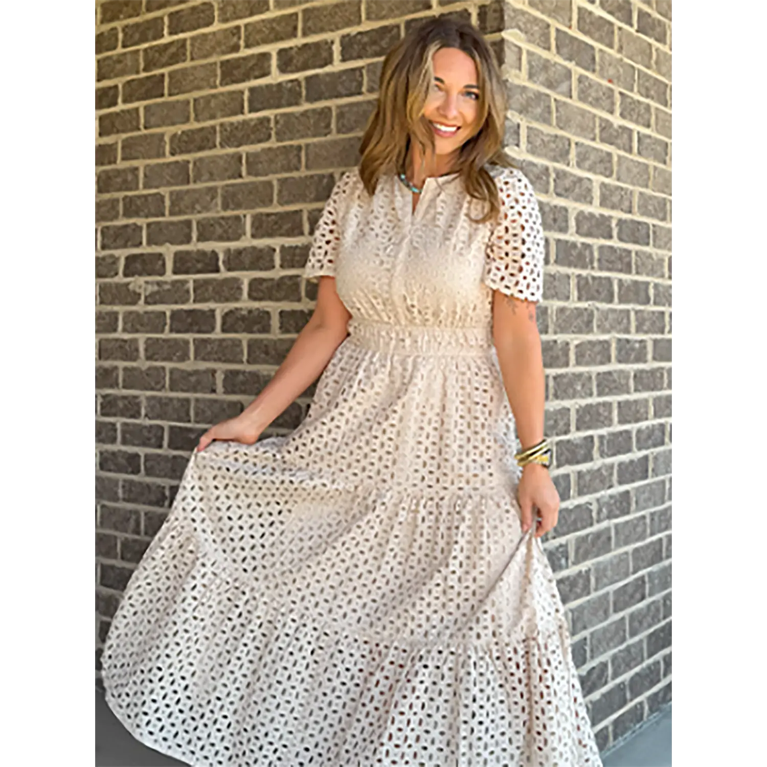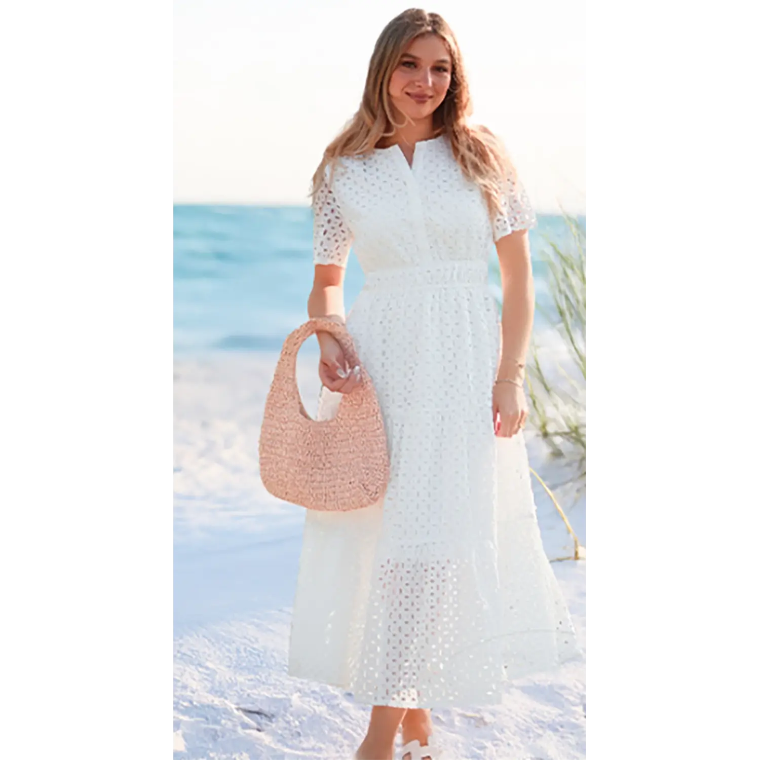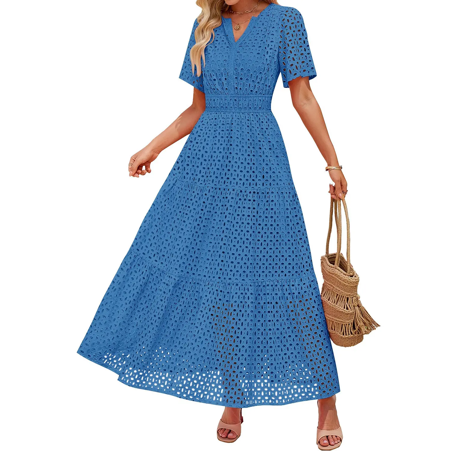 ·Our sexy long dress features a v neck, short sleeves, elastic high waist, eyelet embroidered design, solid color, flowy a line cut, no zipper, two side pockets, ankle length looks more elegant