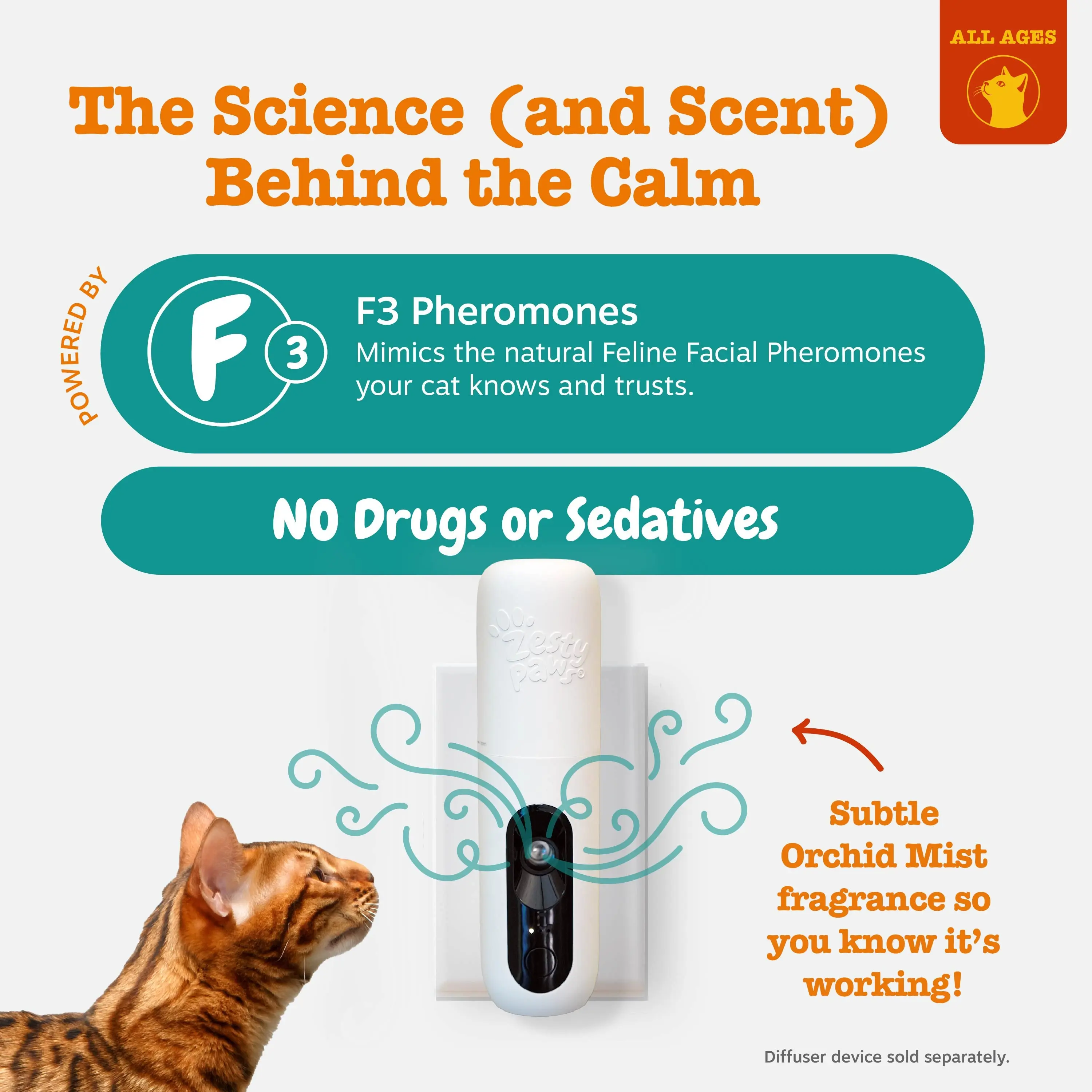 ·Cat Pheromone Diffuser… Reloaded! - This Zesty Paws Cat Calming Diffuser refill mimics the natural calming pheromones that your cat produces to reduce signs of stress to keep them calm.