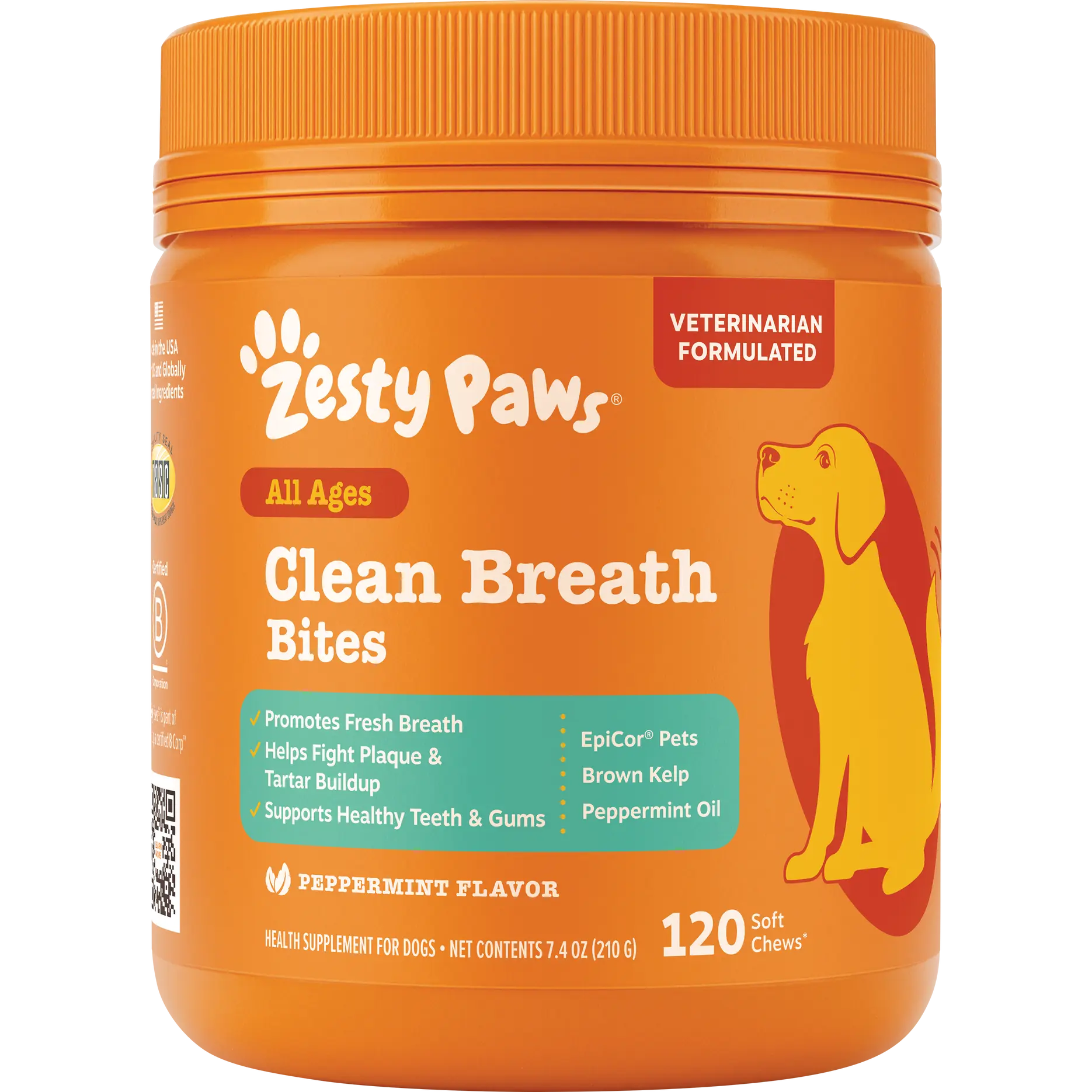 With Brown Sea Kelp, Peppermint Oil, Green Tea Extract, and premium EpiCor Pets, these chews promote fresh breath, support healthy teeth and gums, and bark back against plaque and tartar to make sure you can enjoy the best doggy kiss possible. You can breathe a sigh of relief knowing that your pup can kick the smell and pant fresh and happy. So, say goodbye to the stinks and freshen their breath the Zesty way.