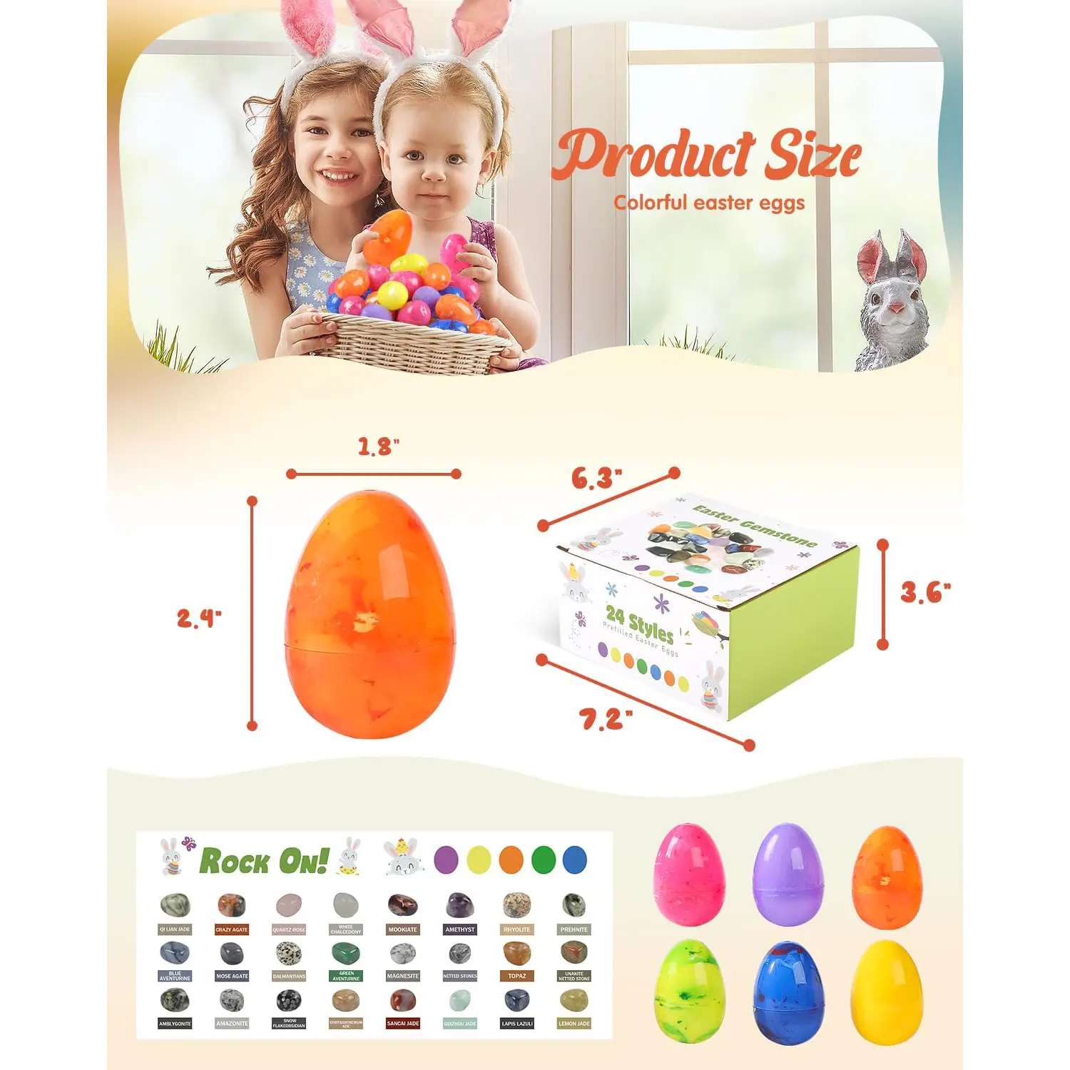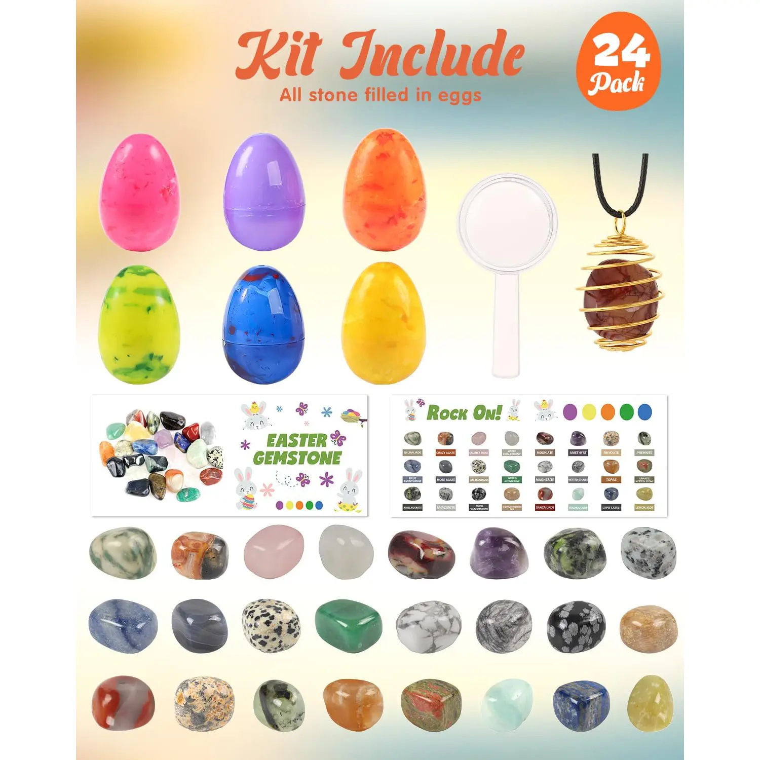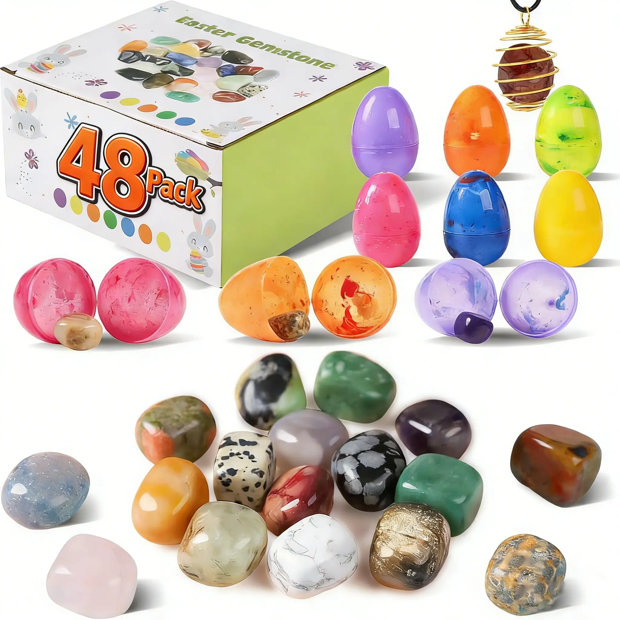 This 24-pack of prefilled Easter eggs is perfect for kids and teens. Ideal for Easter egg hunts, party favors, and classroom prize supplies. Each egg is pre-filled with gemstones, adding excitement.