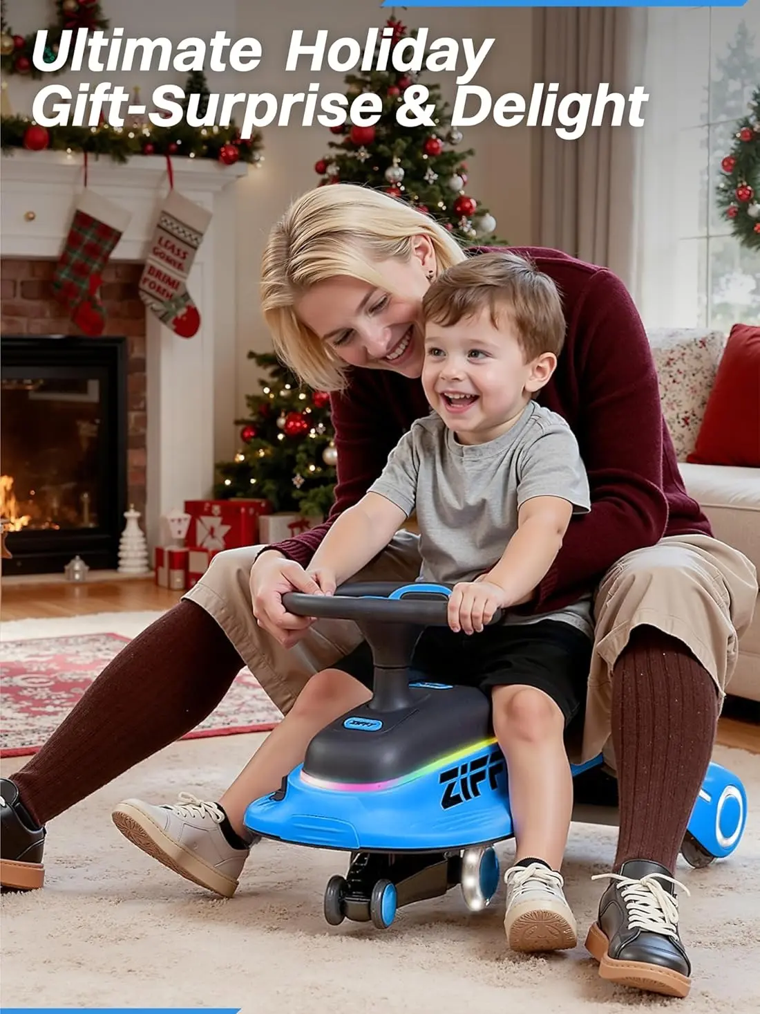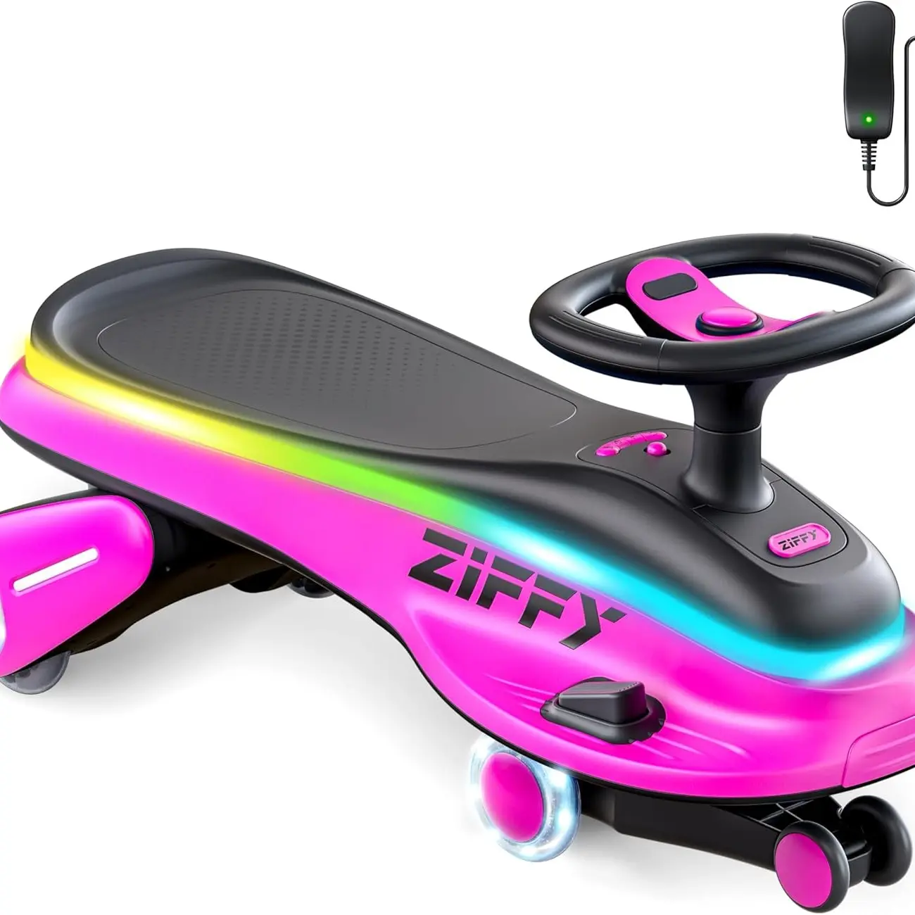 ·360° Spin & Glowing Fun with Dual-mode: The ZIFFY electric wiggle car offers smooth 360° steering and vibrant glowing wheels for thrilling indoor and outdoor fun. Easily switch between electric mode—just press the pedal, or manual mode—steer with the wheel or propel with your feet, for endless joyful riding experiences!