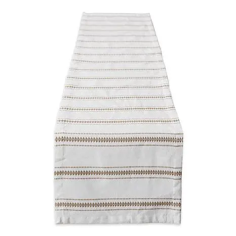 Design Imports Zig Dobby Stripe Table Runner - 14" x 72" This festive table runner is a flat weave with Zig Dobby stripes. It will add a Southwest vibe to your table décor. Our table runner can spruce up dining, foyer, console or coffee tables while still showing off the surface of furniture. Set plants or other centerpieces atop our durable and long lasting table runner to update any space.