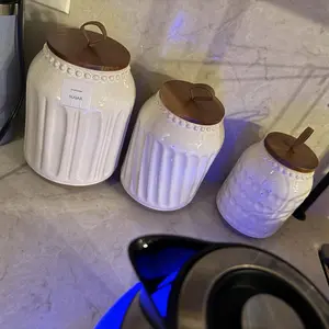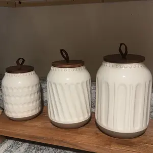 Kitchen Jars 3 pcs set . Jarrones de cocina tapa de madera . #kitchen #jars #kitchencanisterset #fyp #kitchendecor