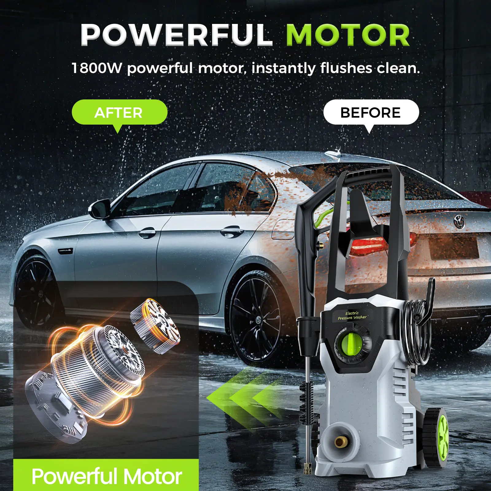 Efficient Cleaning Solution - 2400PSI Max Pressure: Ensures thorough cleaning of stains and grime. - 3.0GPM Flow Rate: Provides efficient cleaning over long distances. - 1800W Power: Offers powerful cleaning capabilities.