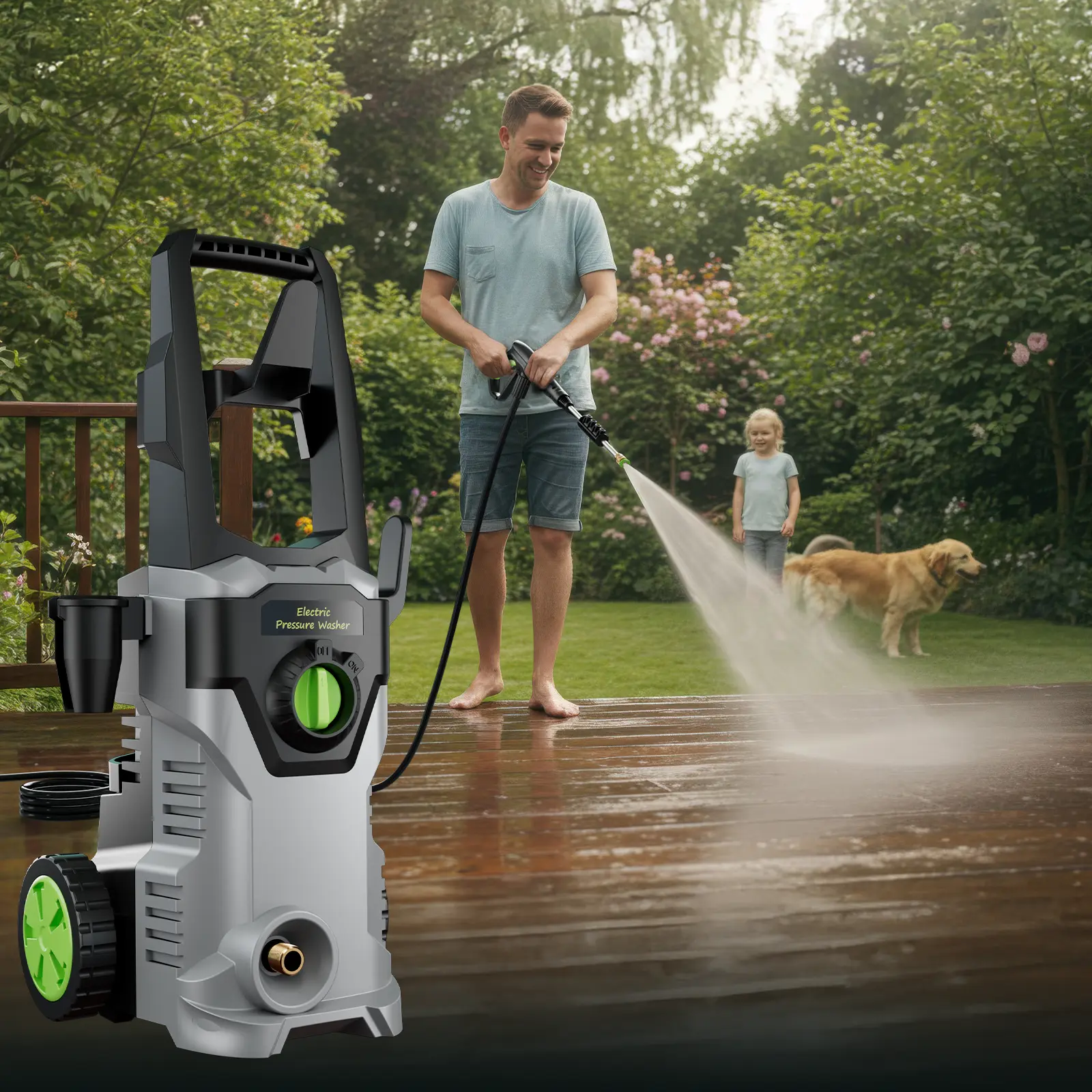 User-Friendly Design - Compact, Portable Design: Lightweight and easy to install. - Plug-and-Play Functionality: Simplifies setup and operation. - 23-foot High-Pressure Hose: Provides ample working range. - Dual Wheels and Anti-Tip Design: Ensures stability during cleaning.