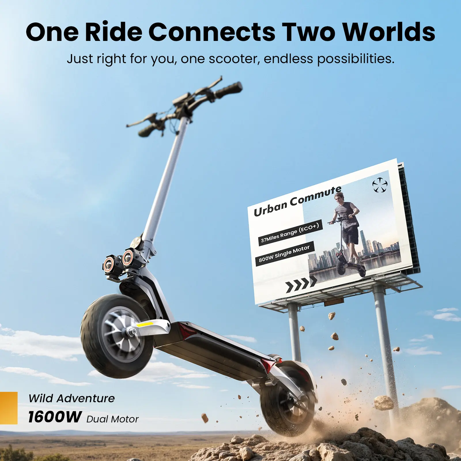 Designed with durable off-road tires, the R1 PRO handles gravel, dirt, uneven roads, and bumps. It provides excellent shock absorption, stability, and traction, ensuring a smooth ride no matter the terrain.