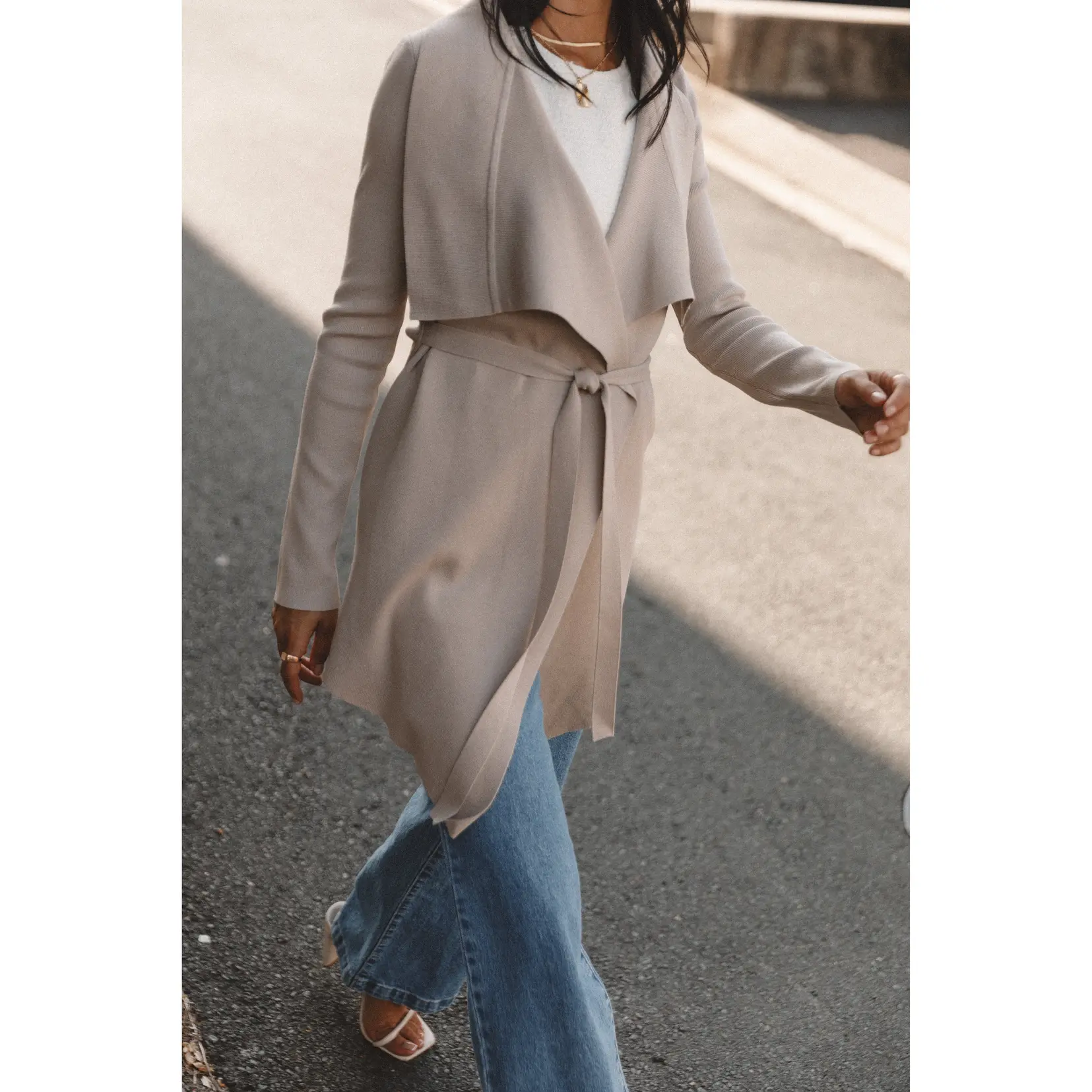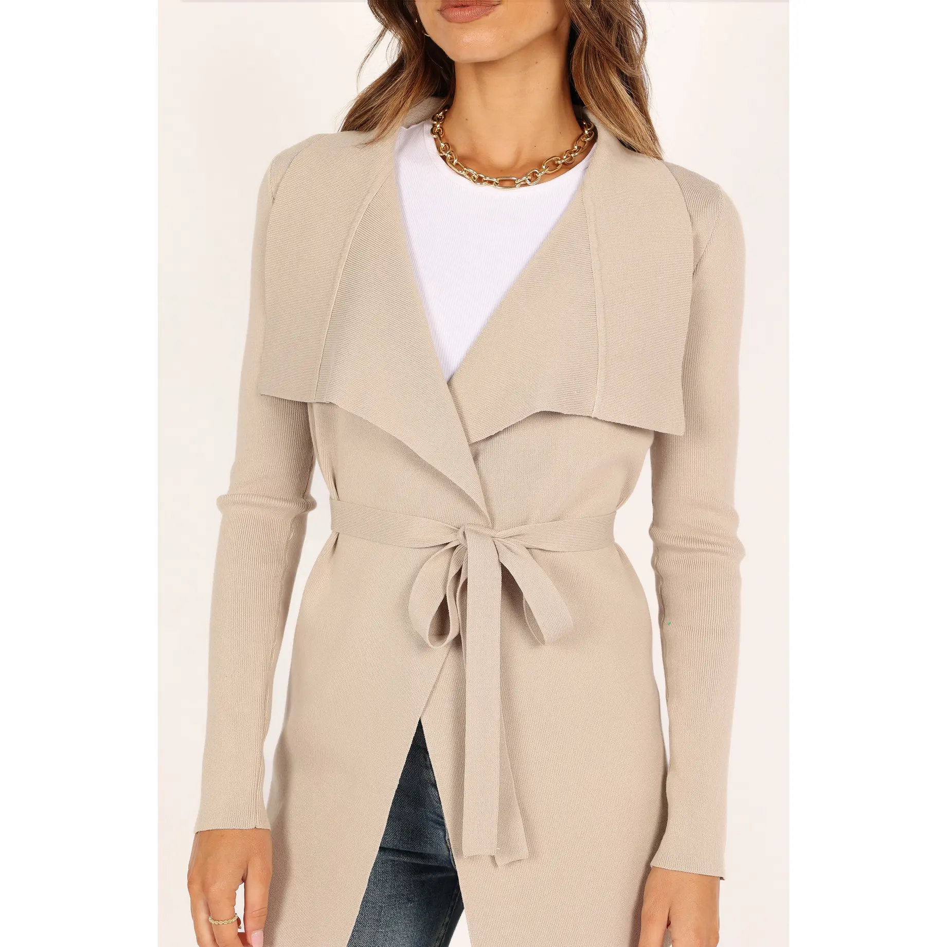 This stretch knit cardigan is the perfect way to add a feminine touch to any outfit! Featuring long sleeves and a wide collar, it's perfect for adding just the right amount of coverage. The waist tie gives you an adjustable fit that flatters your figure, while the waterfall style front adds an elegant touch.