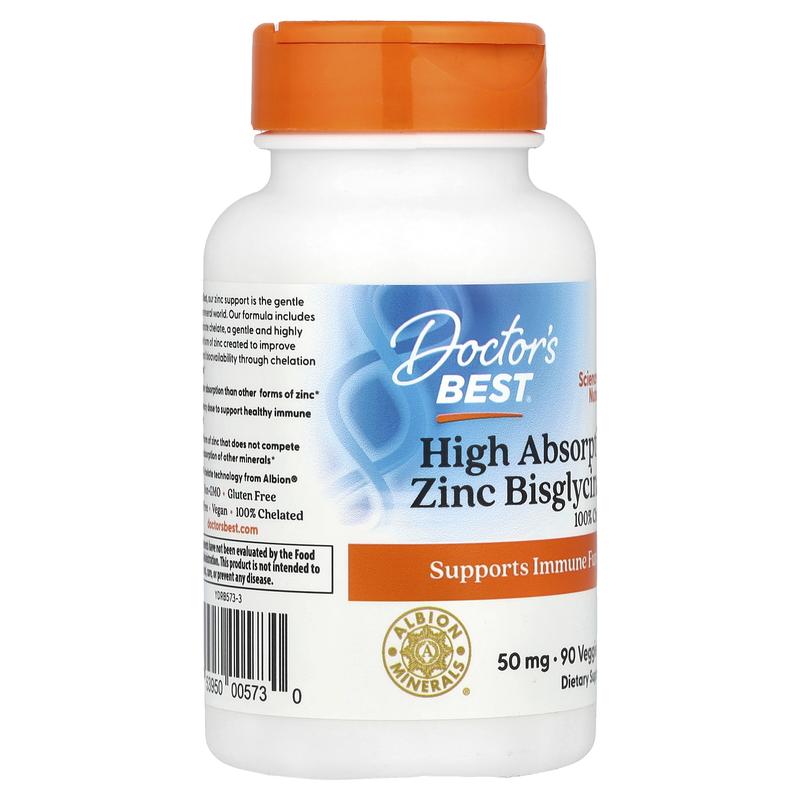 5. Doctor's Best High Absorption Zinc Bisglycinate, 50 mg, 90 Veggie Caps