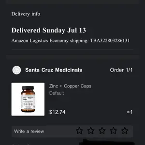 Absolutely love Santa Cruz supplements love him as a person love how he is absolutely anal about health. But these two supplements are not meant to be taken together zinc is meant to be taken in the morning. Coppers meant to be taken later in the day. Do not combine the two can upset the stomach.