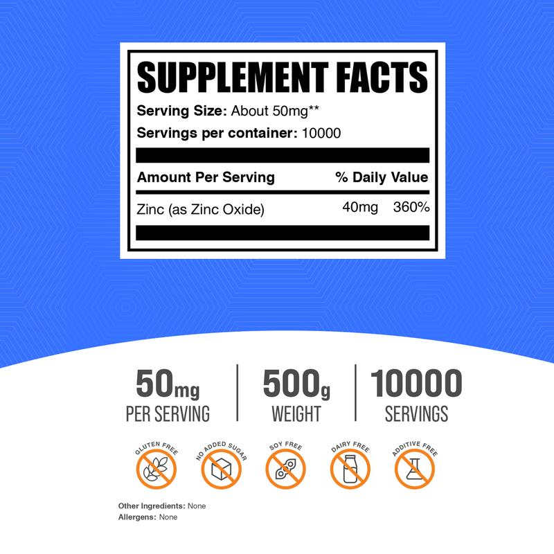 Oral Health: Our premium zinc oxide powder is also great for maintaining a healthy mouth. Zinc has anti-inflammatory properties that can help prevent gum disease and promote oral healing. Add to your oral hygiene routine for a brighter, healthier smile.