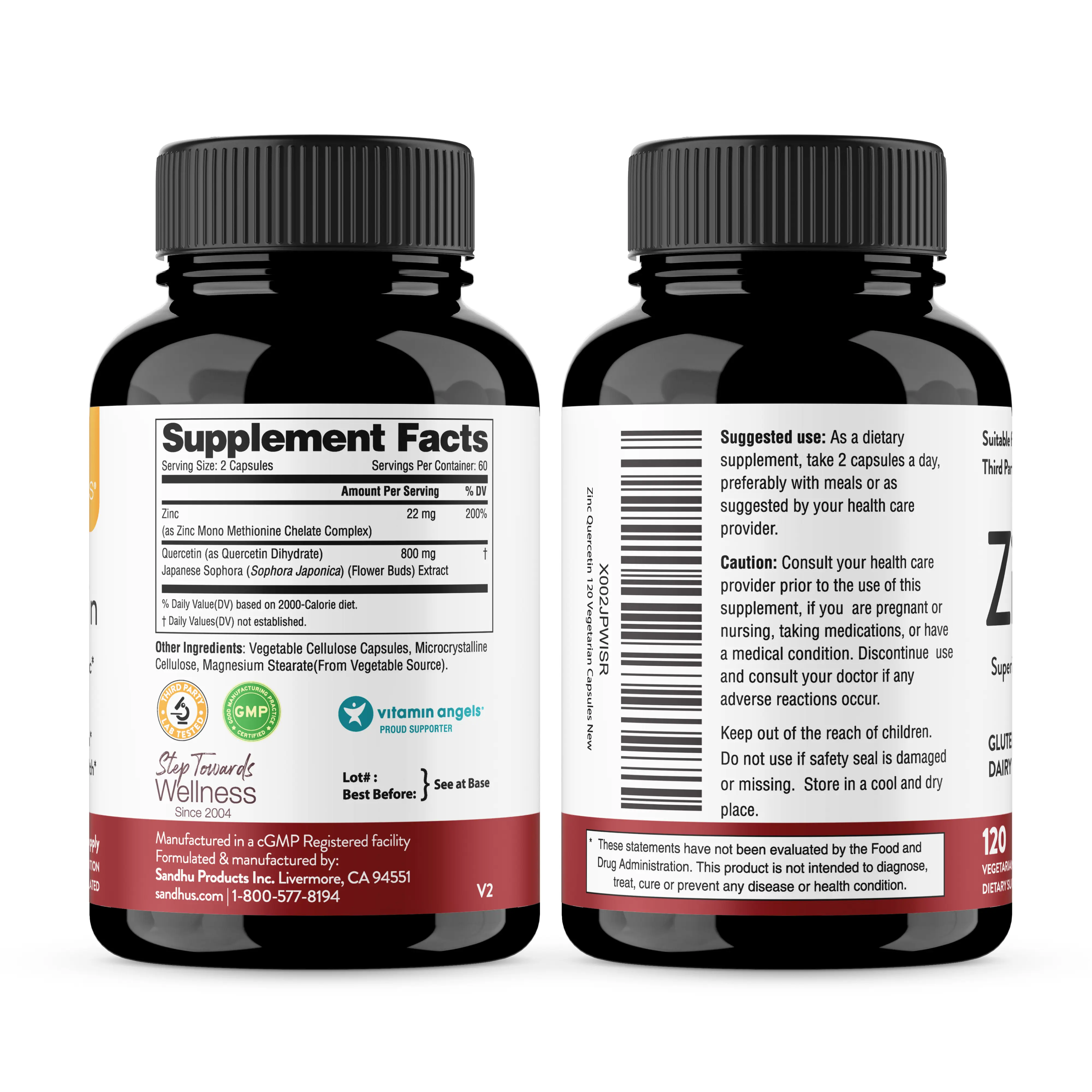5. 【Sandhus】Zinc Quercetin 120 Vegetarian Capsules, Gluten Free, Soy Free, Dairy Free Healthcare Dietary Supplement Fitness