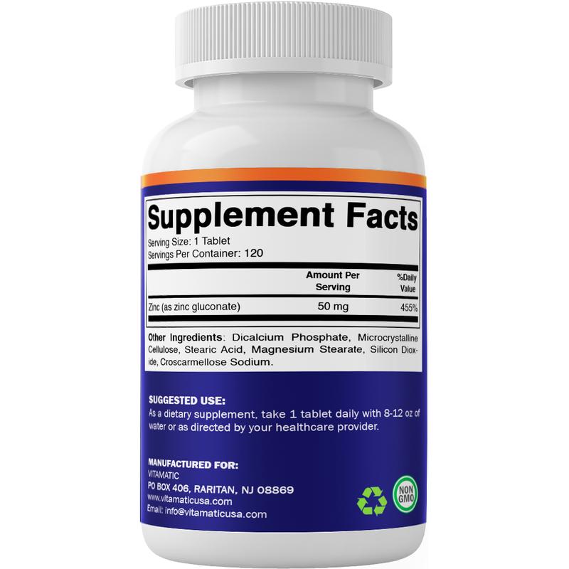 Zinc Gluconate, Dicalcium Phosphate, Microcrystalline Cellulose, Stearic Acid, Magnesium Stearate, Silica, Croscarmellose Sodium