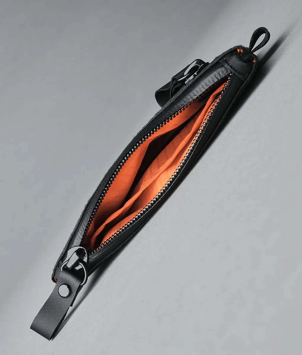 Stow your cards and cash quickly in our smallest pouch. Designed for those who want to carry as little weight as possible, the Zip Pouch has secure storage space for frequently used items such as credit cards and bank notes. With an extra pouch for coins or smaller items like your spare SIM card, you'll find room even for business cards too!