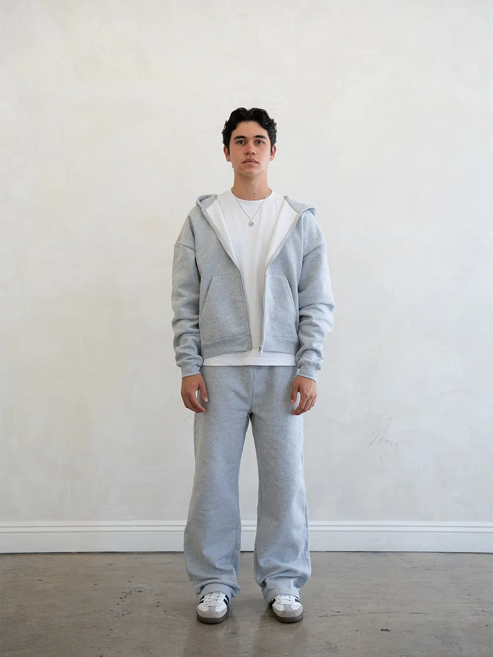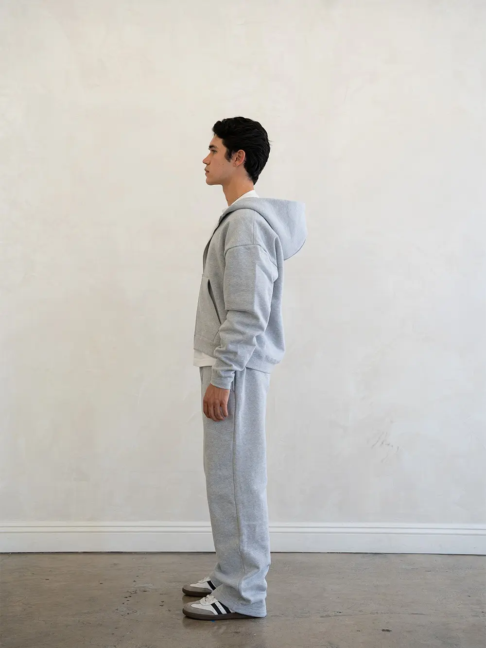 5’9” 145lbs wearing size small zipup and medium lucid blanks sweats. Quality is great but the zip up runs a bit big, I’m wearing a small and it’s lil oversized on the arm length waist, but it still fits how I want. I’d recommend sizing down if you want a less baggy fit but overall im very happy.