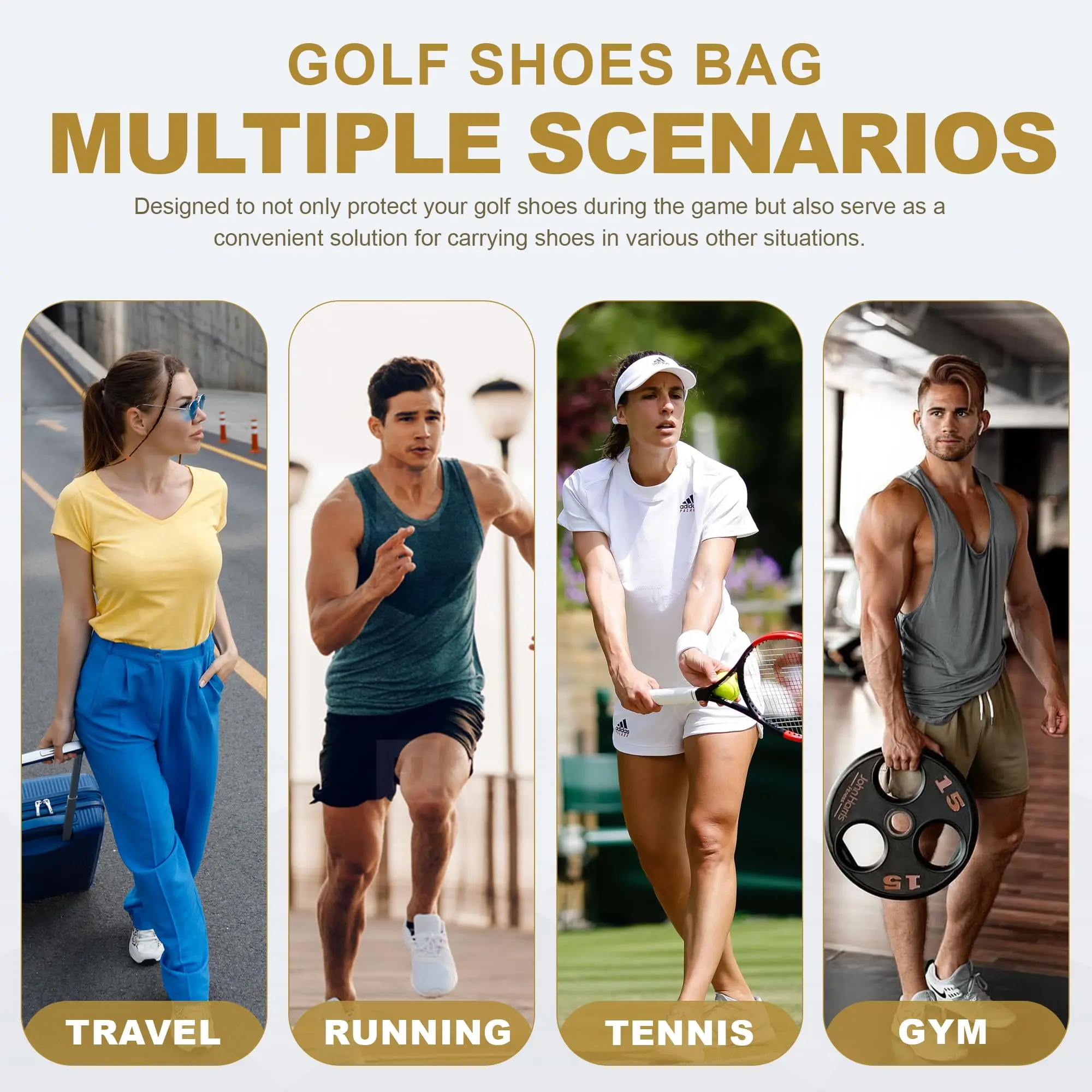 【Shoe Bag for Any Occasion】Golf shoe bag design for travel not only can be used for golf in mind but also useful for any athletic shoes - baseball, basketball, soccer cleats. Or used to carry and travel with your shoes for work - dress shoes, heels, etc