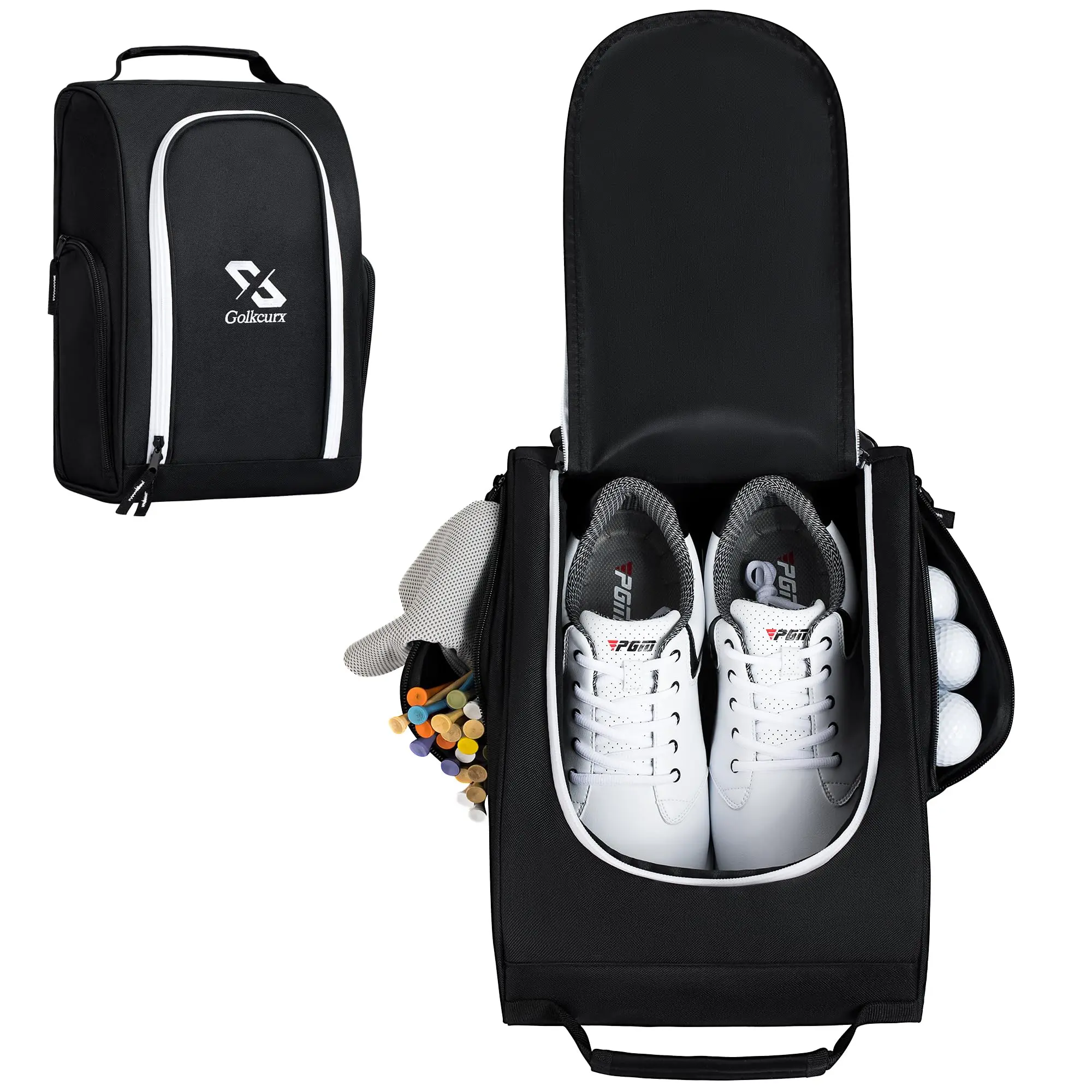 【Shoe Bag Size】9.4inch(L)*6inch(W)*14inch(H),fits up to shoes size 14(US )for men/15(US)for women. Convenient side pockets can be used to add a few items like golf balls, socks, sunscreen, and sunglasses