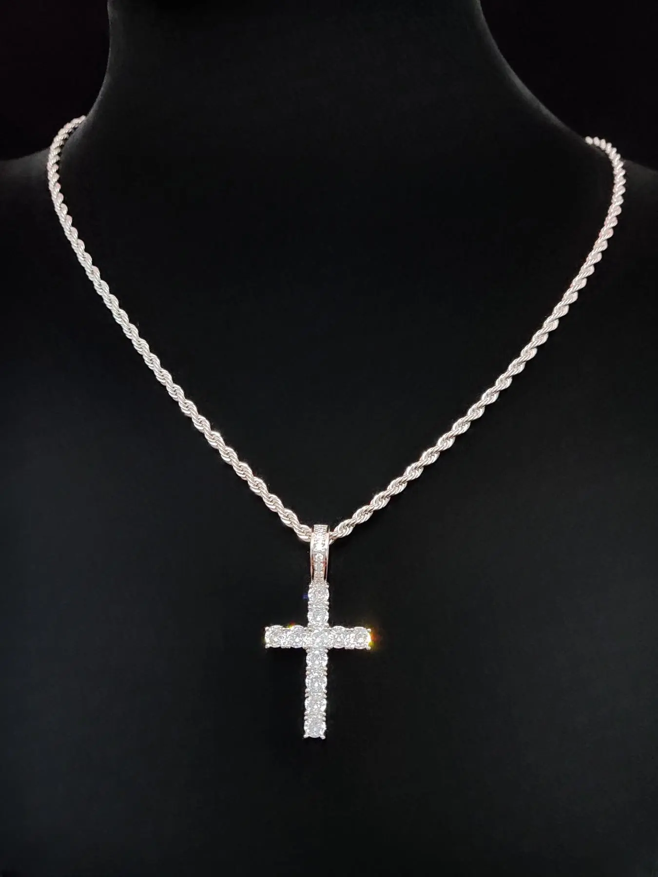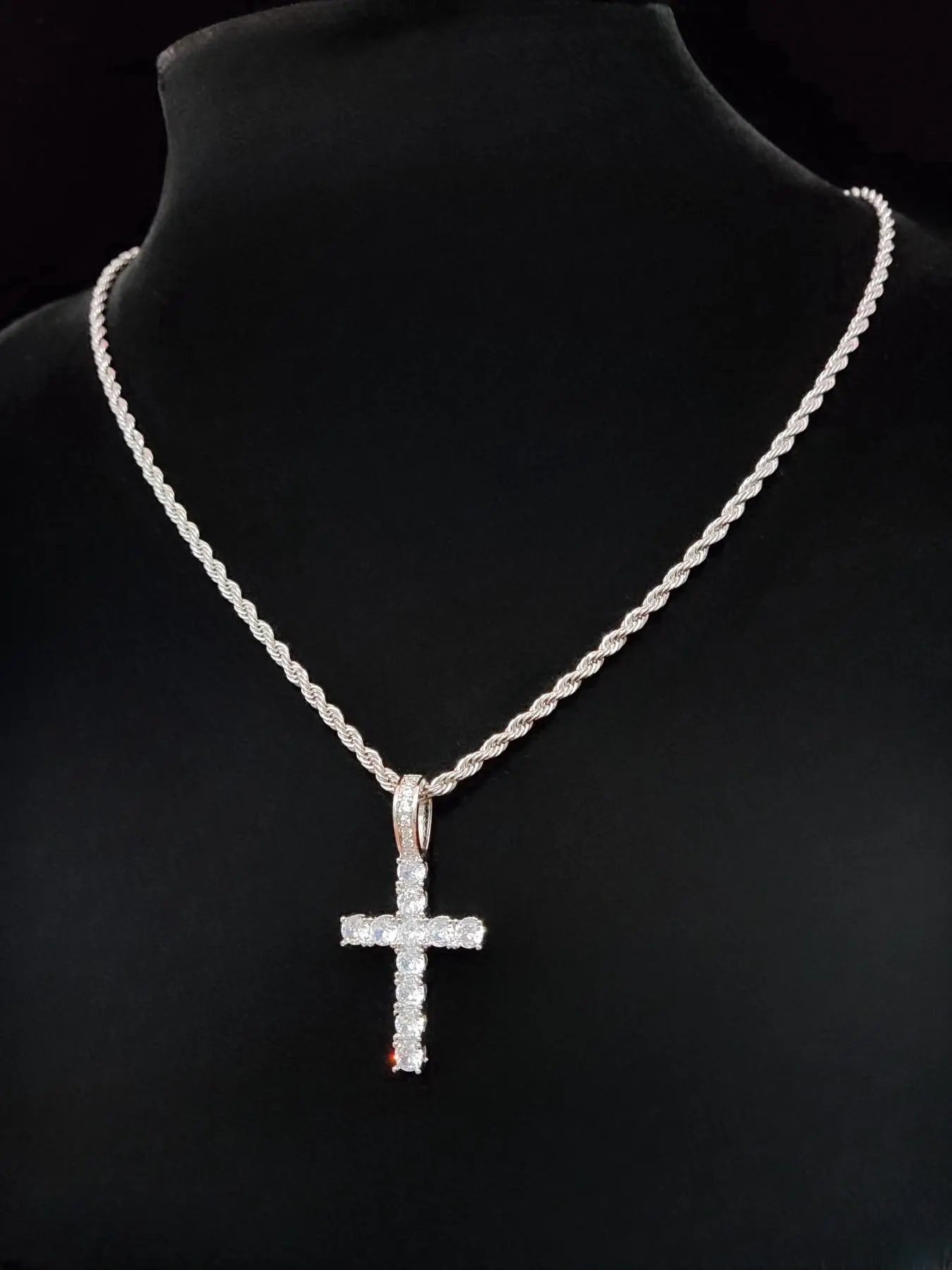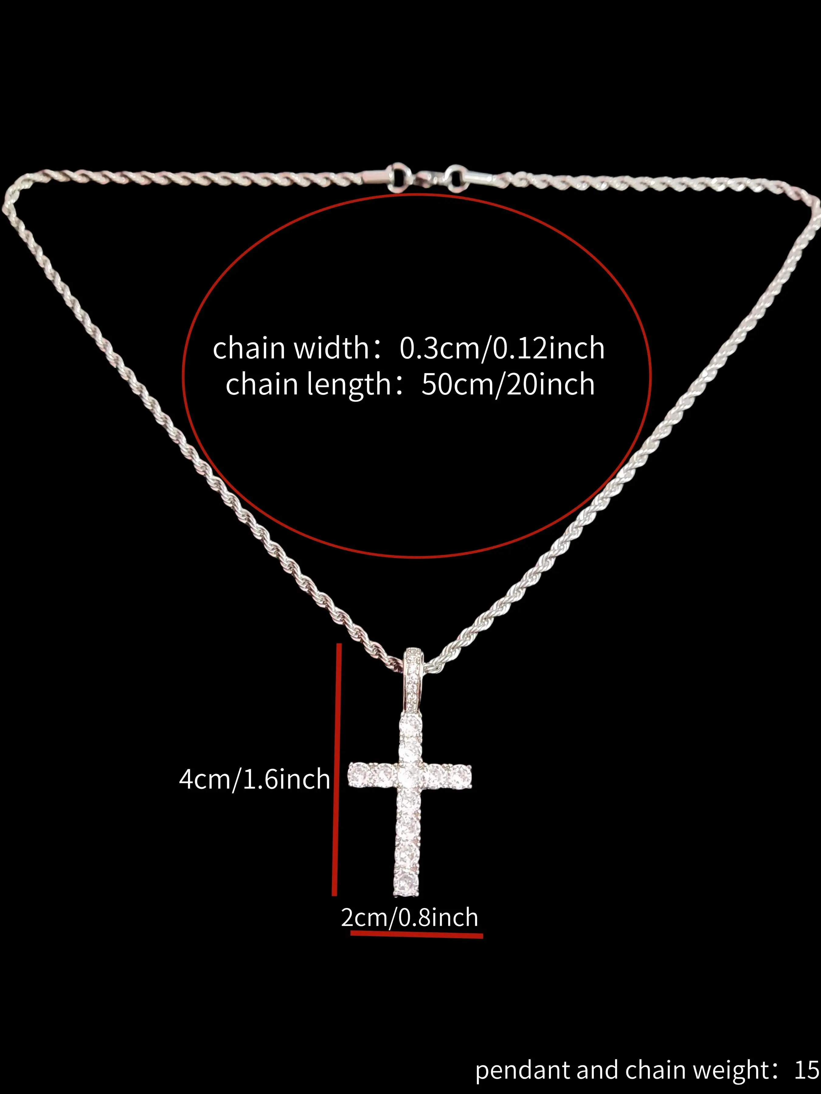 Artificial Zircon Cross Pendant Twist Chain Necklace Zirconia Cross Pendant, Punk Style Cross Chain Design Jewelry for Party, Daily Decor, Trendy All-match & Exquisite Jewelry for Birthday Gift, Glitter Cross Pendant