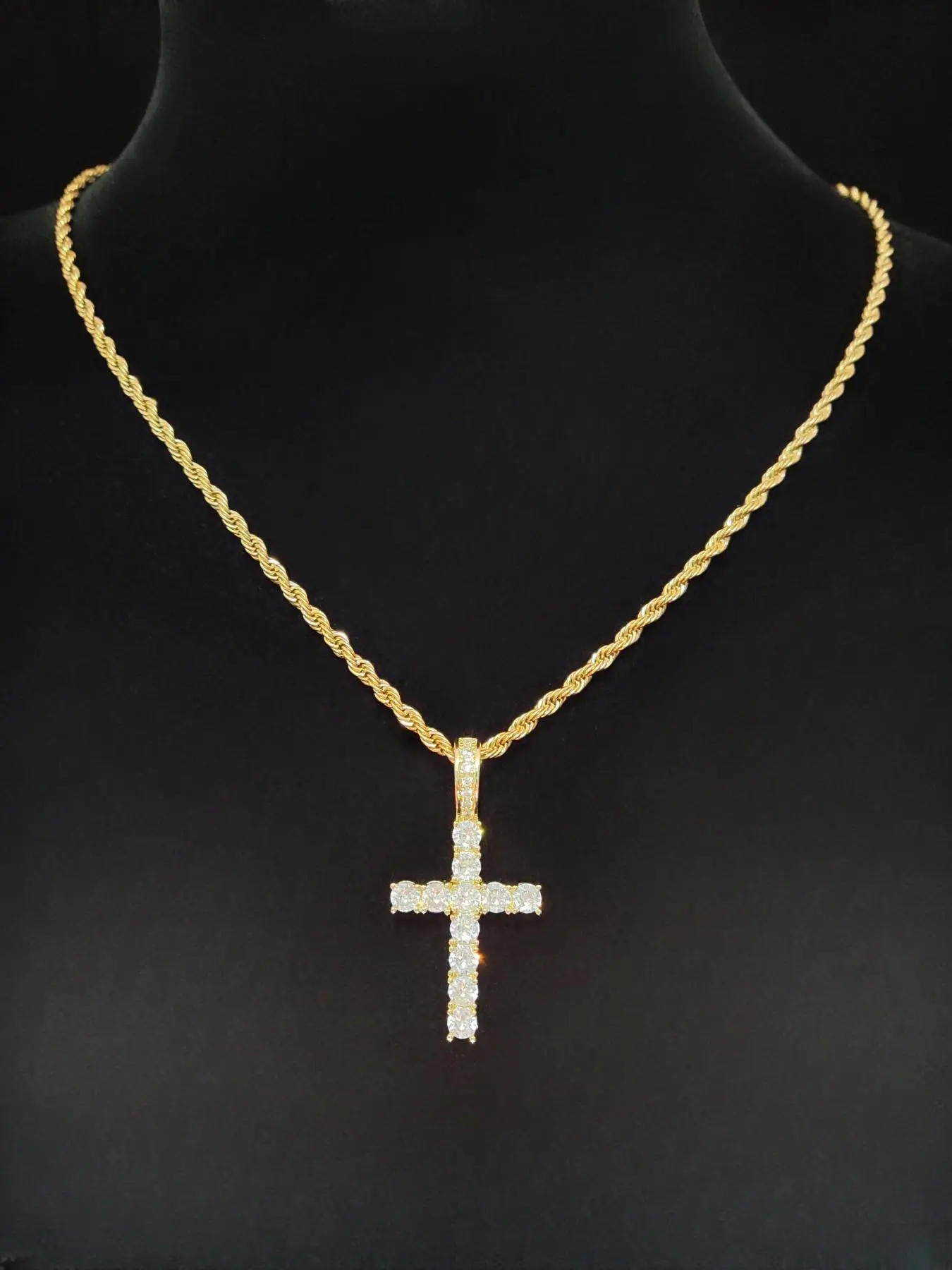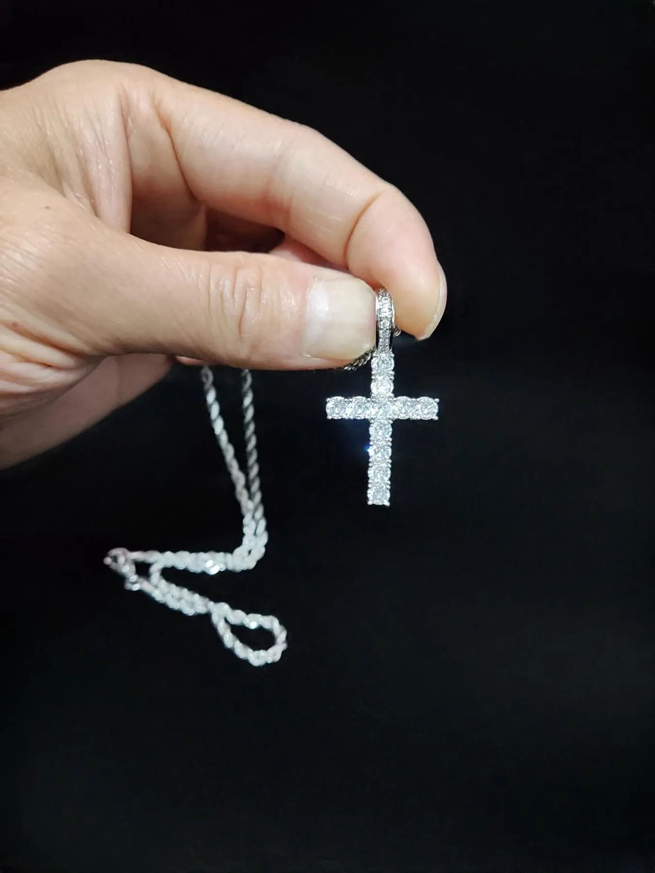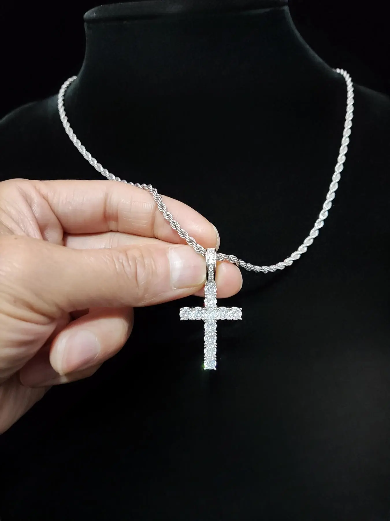 Artificial Zircon Cross Pendant Twist Chain Necklace Zirconia Cross Pendant, Punk Style Cross Chain Design Jewelry for Party, Daily Decor, Trendy All-match & Exquisite Jewelry for Birthday Gift, Glitter Cross Pendant