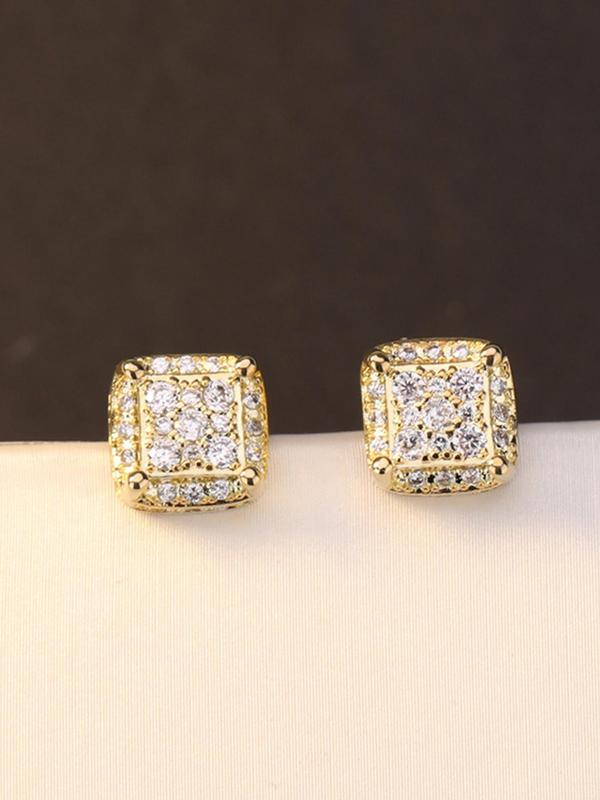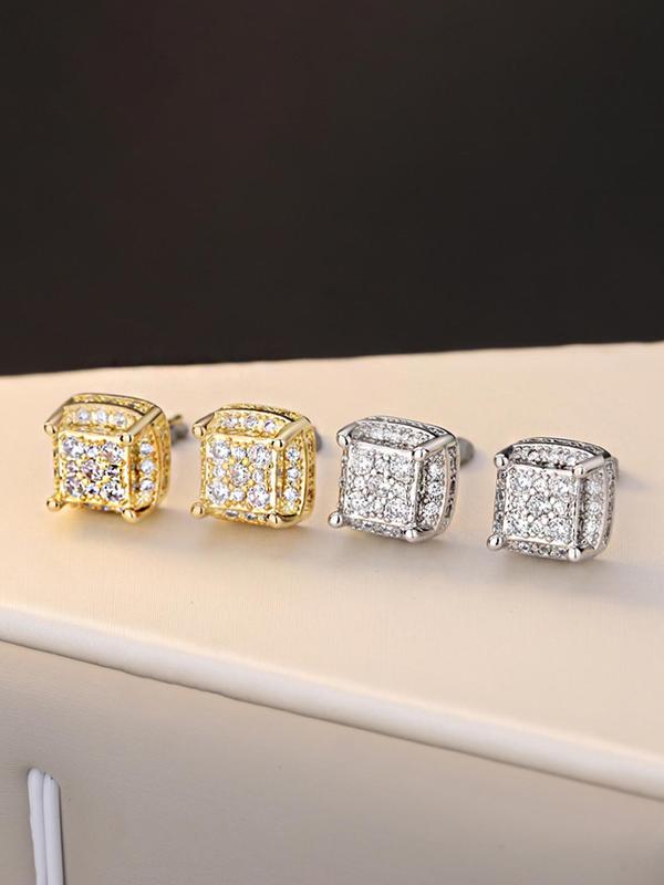 Square Shaped Zircon Decorated Earrings, Artificial Zircon Earrings, Fashionable Jewelry for Women & Men, Trendy All-match & Exquisite Jewelry for Birthday Gift