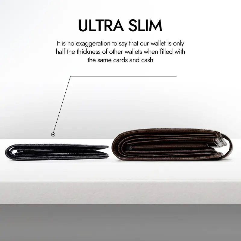 This wallet certainly is Sleek and modern however with the cards in it it's less minimal meaning it's a thicker wallet when it has things in it but still smaller than a traditional wallet