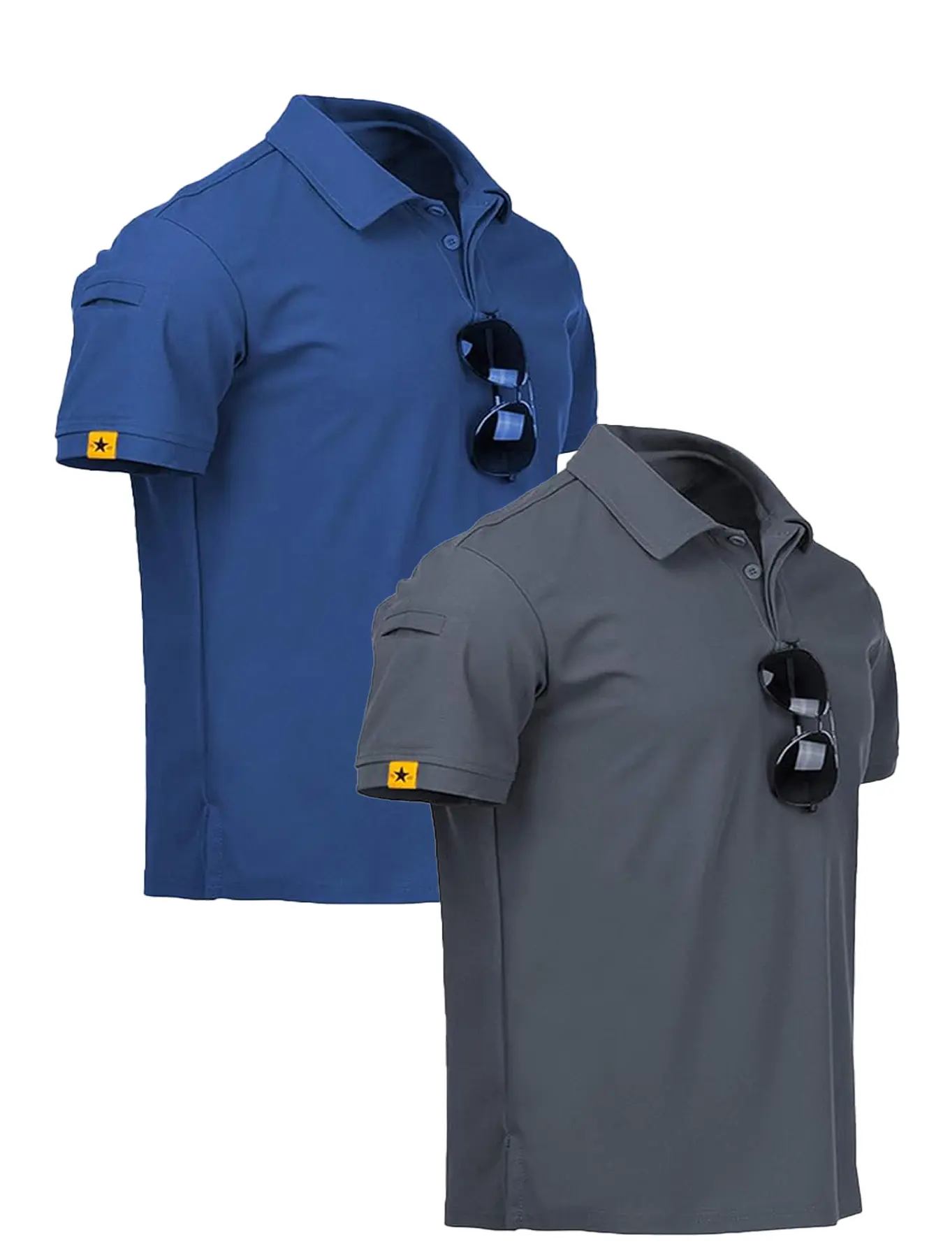 5. ZITY Mens 2 Pack Polo Shirts Short Sleeve Performance Sports Golf Shirt for Men Tactical Shirt
