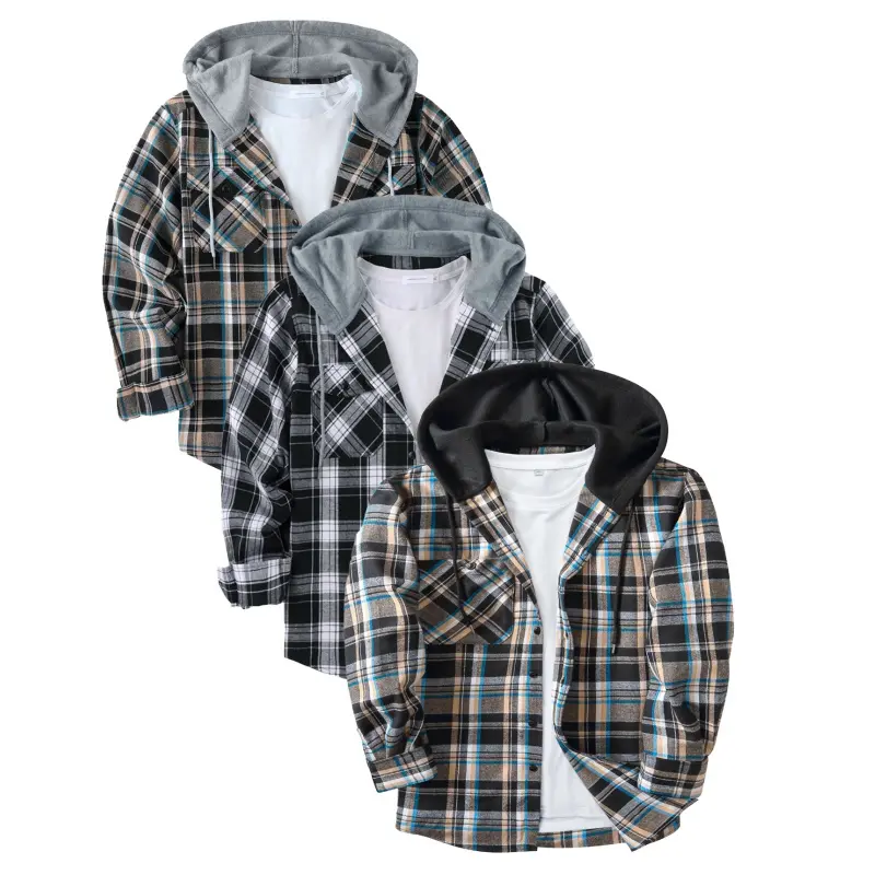ZITY Men's 3 Pack Flannel Hoodie Shirts