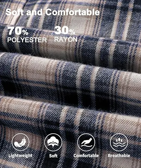 Men's flannel shirts crafted from brushed cotton flannel. Offers warmth and lightweight comfort. Perfect for daily wear, ensuring you stay cozy without compromising on style. The material is soft, making it ideal for extended wear. 🧥