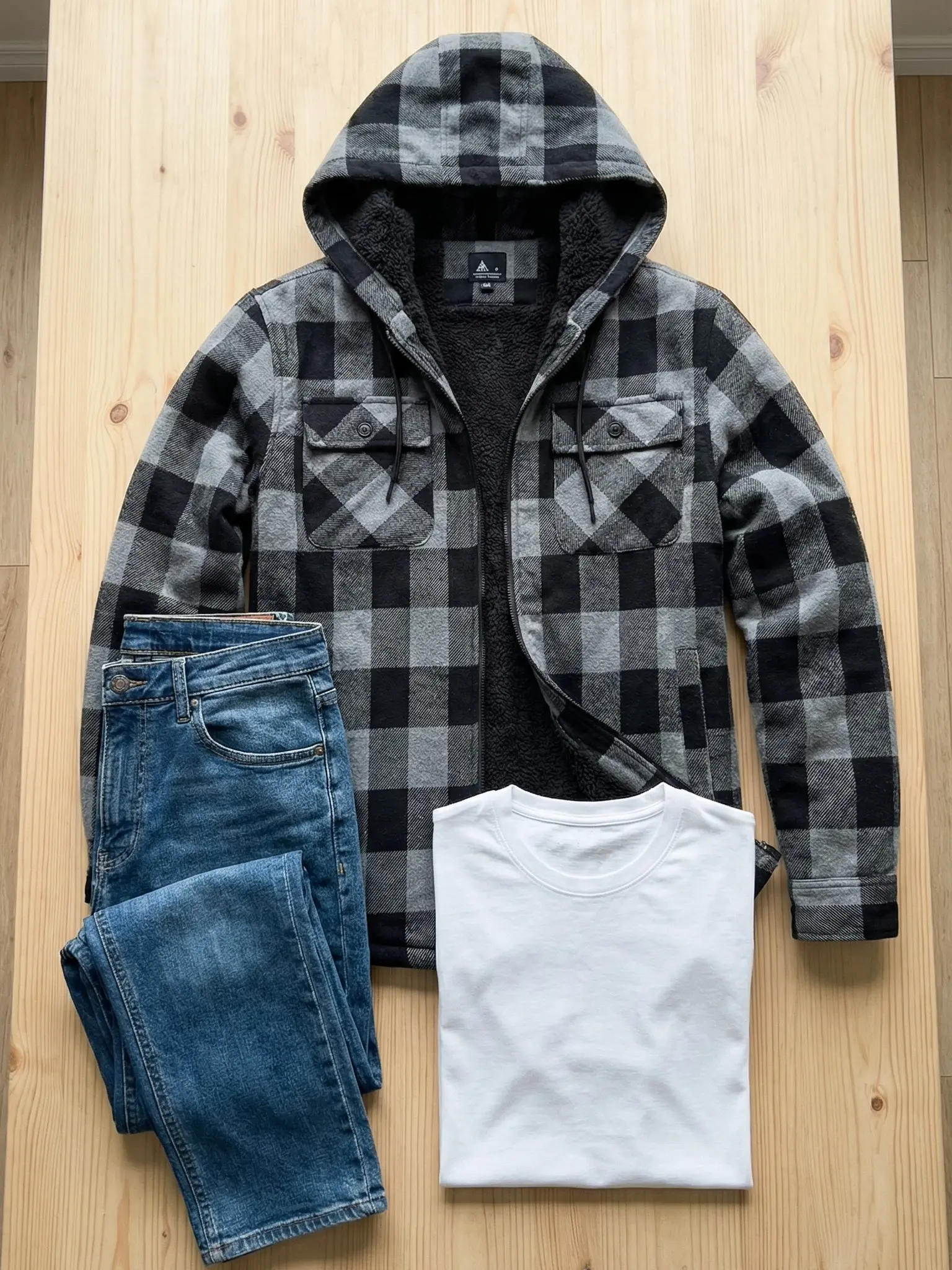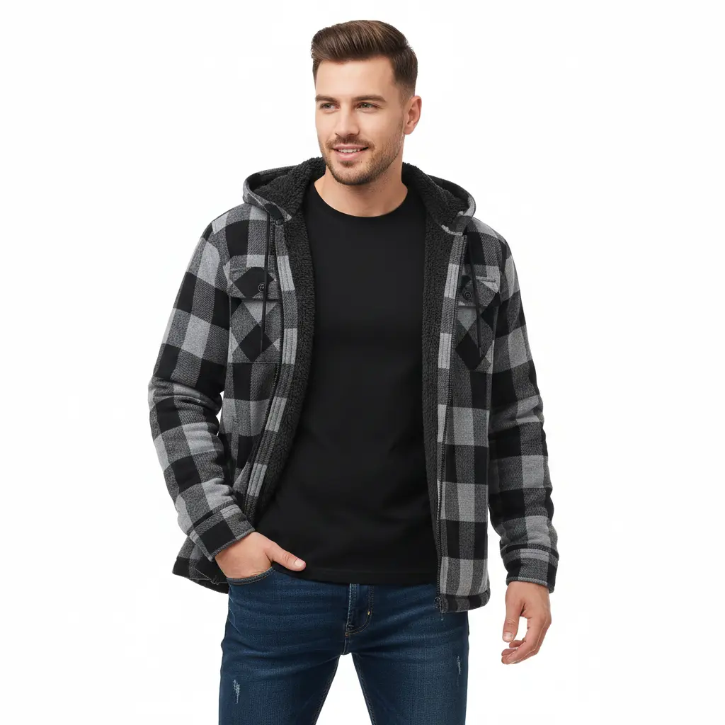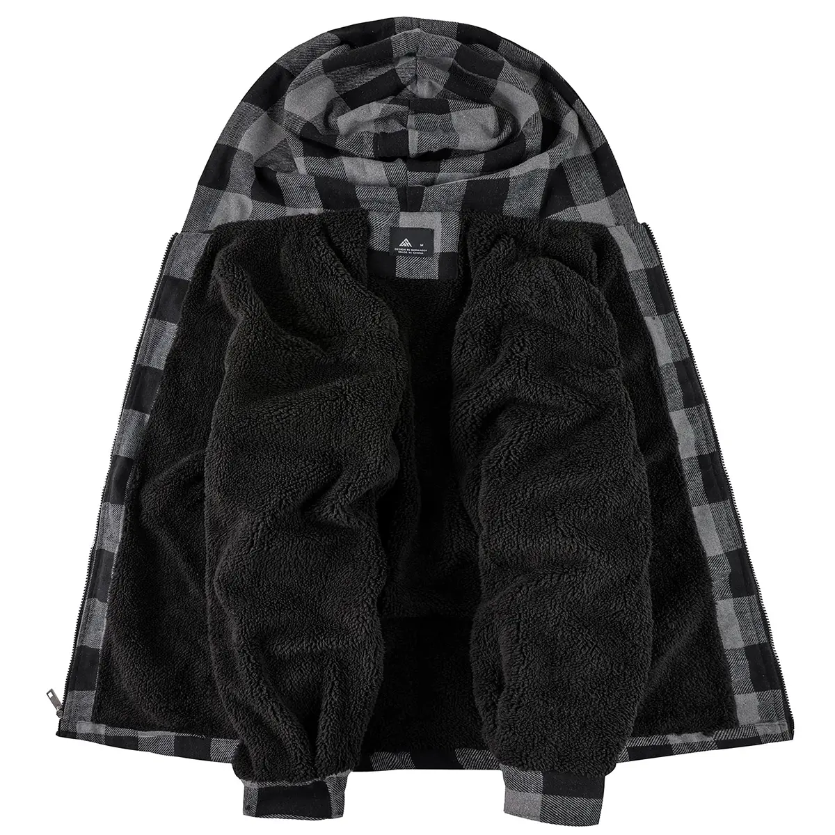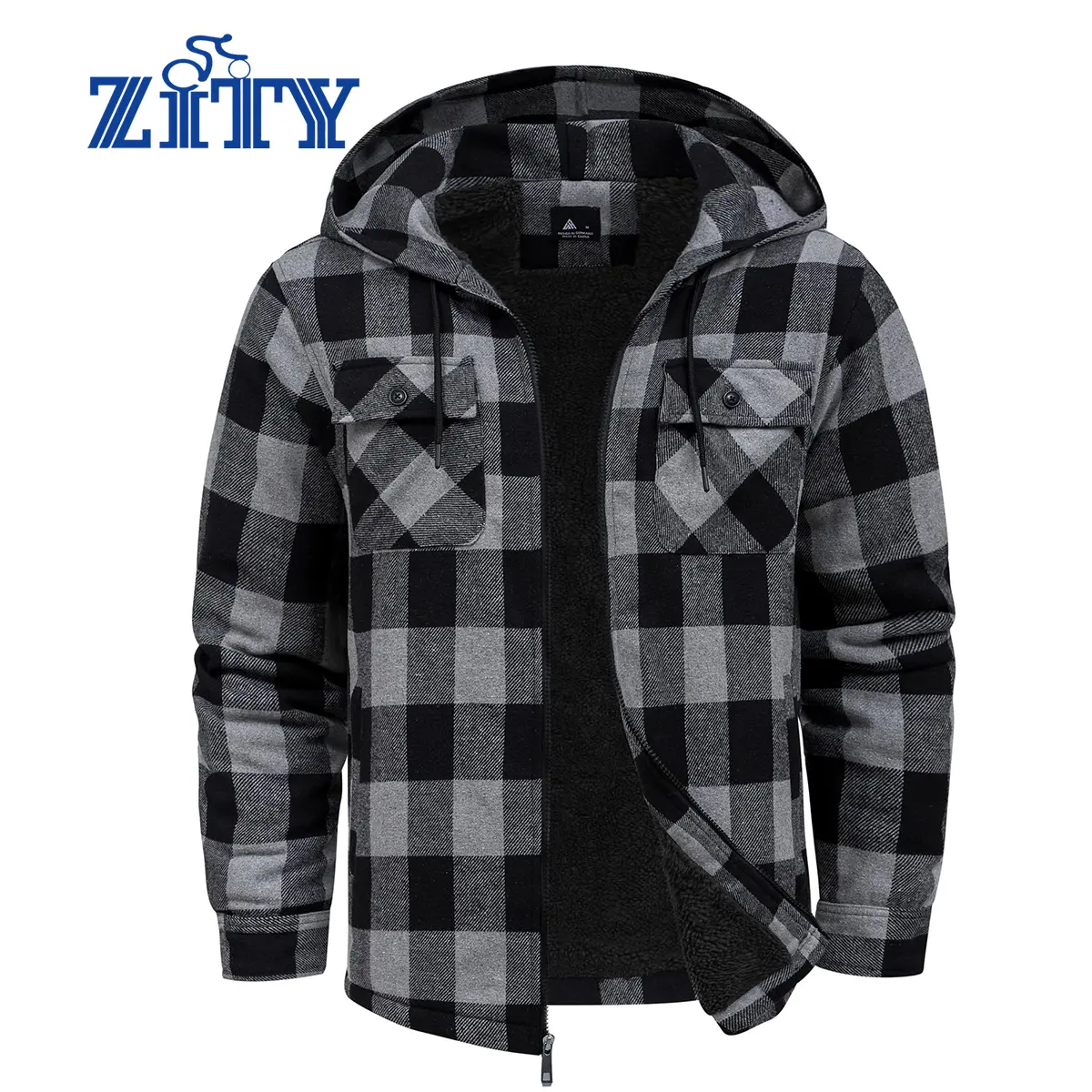 ZITY Men's Flannel jackets with Hood Fleece Lined Plaid Jacket Zip Up Winter Warm Coat Fall Clothes Casual Checked Hoodie men's clothing Gamis