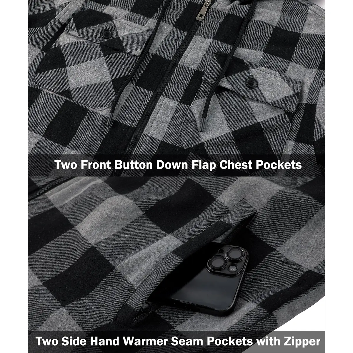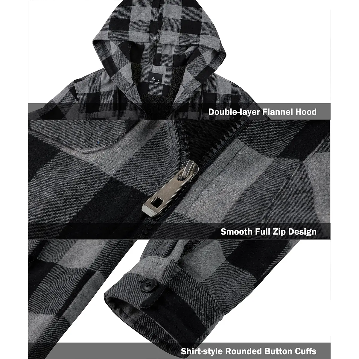 5. ZITY Men's Flannel jackets with Hood Fleece Lined Plaid Jacket Zip Up Winter Warm Coat Fall Clothes Casual Checked Hoodie men's clothing Gamis