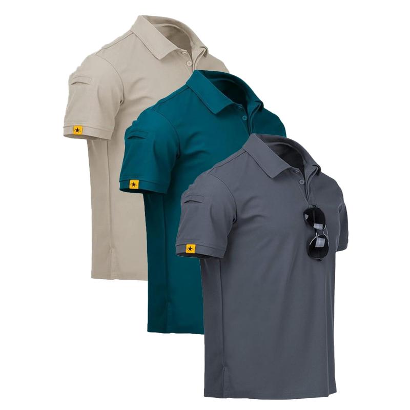 ZITY men's three-piece short-sleeve polo shirt set, suitable for sports, casual, and business wear.These crewneck tactical T-shirts add versatility to your wardrobe.Ideal for golf and everyday wear, this shirt combines style with function perfectly.