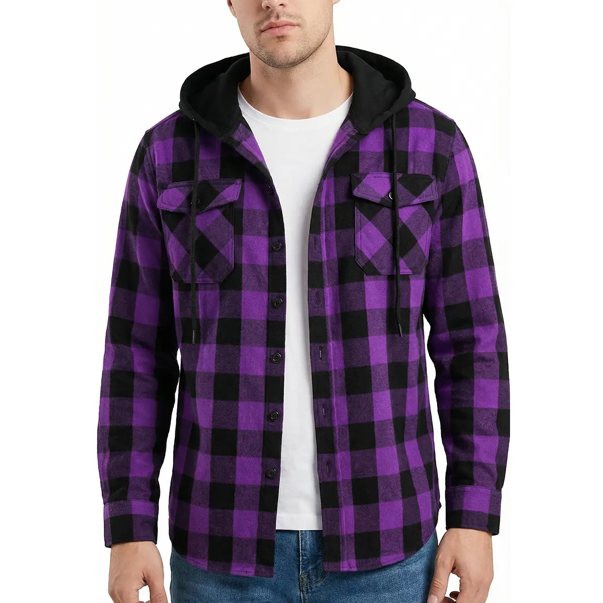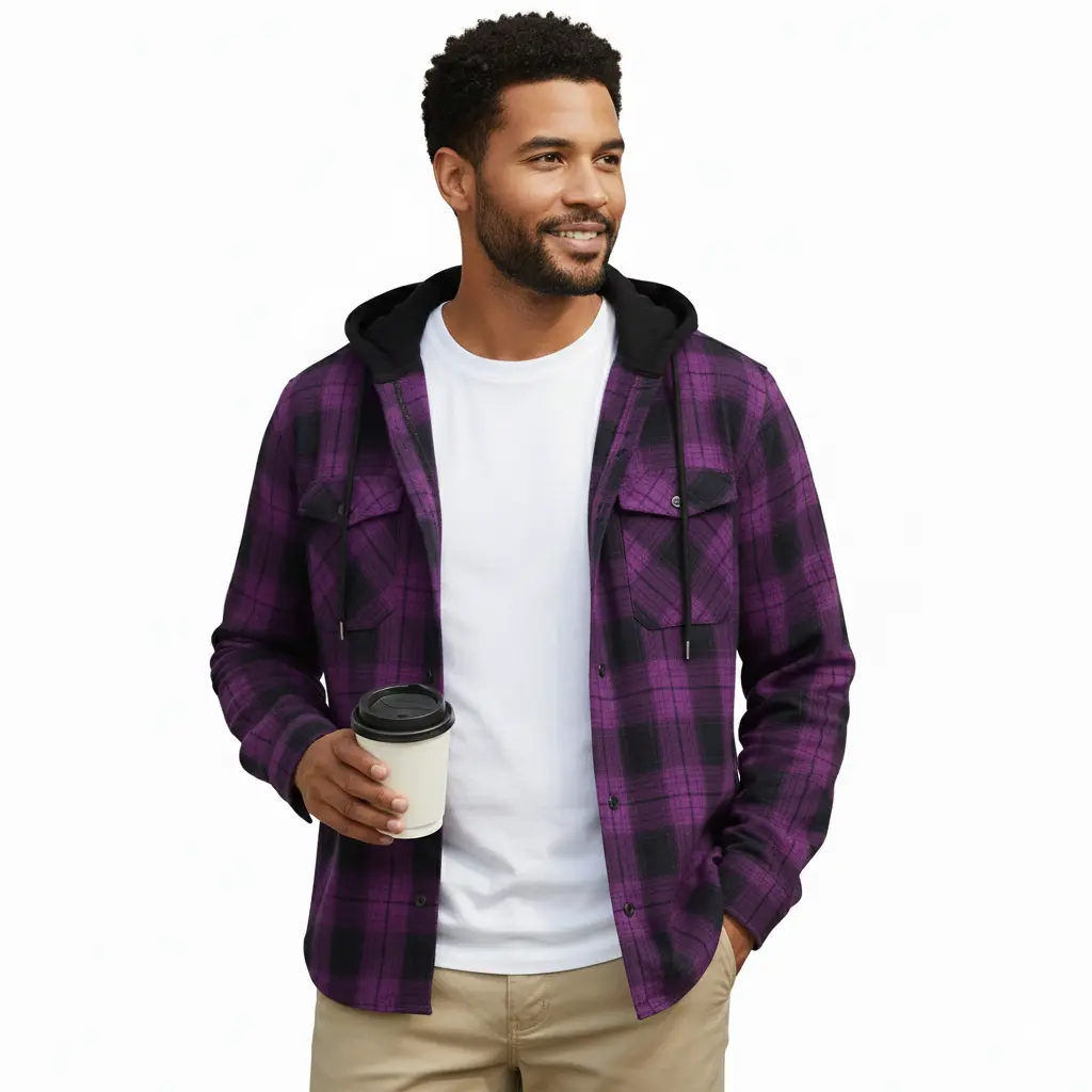 ·Hooded plaid flannel — casual, comfy, and stylish.
