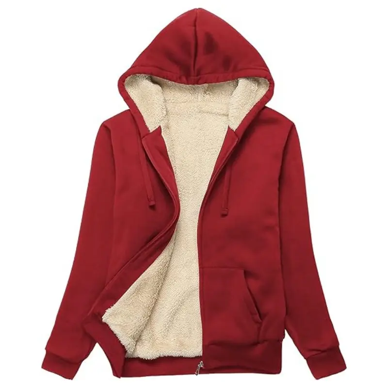 Stay cozy this season with the ZITY Hoodie for Women. This full-zip up sweatshirt features a thick Sherpa lining for extra warmth. Perfect for chilly days, it offers both style and comfort. The hoodie is designed with a hood, making it ideal for layering.