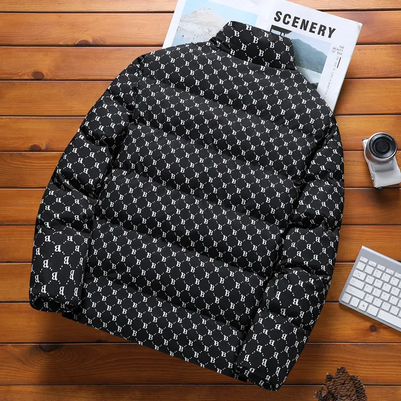 ·Men's Winter Jacket: This full print letter B stand collar cotton jacket is perfect for winter. It offers warmth and a loose fit, making it comfortable for everyday wear. 🌨️