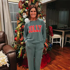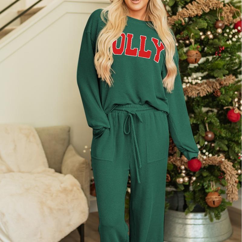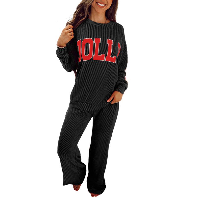Elevate your casual style with the Znacicc Women's Fiery Red Corduroy Two Piece Outfits "JOLLY". This set includes a long sleeve top and pants, perfect for fall. The "JOLLY" print adds a unique touch. Ideal for loungewear, it offers comfort and style. š
