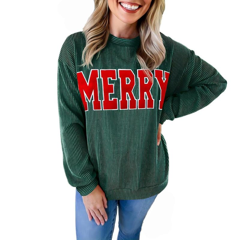 Znacicc Women's Christmas Fiery Red Corduroy Two Piece Outfits "JOLLY" Print Long Sleeve Top & Pants with Pockets Casual Winteroutfit Loungewear