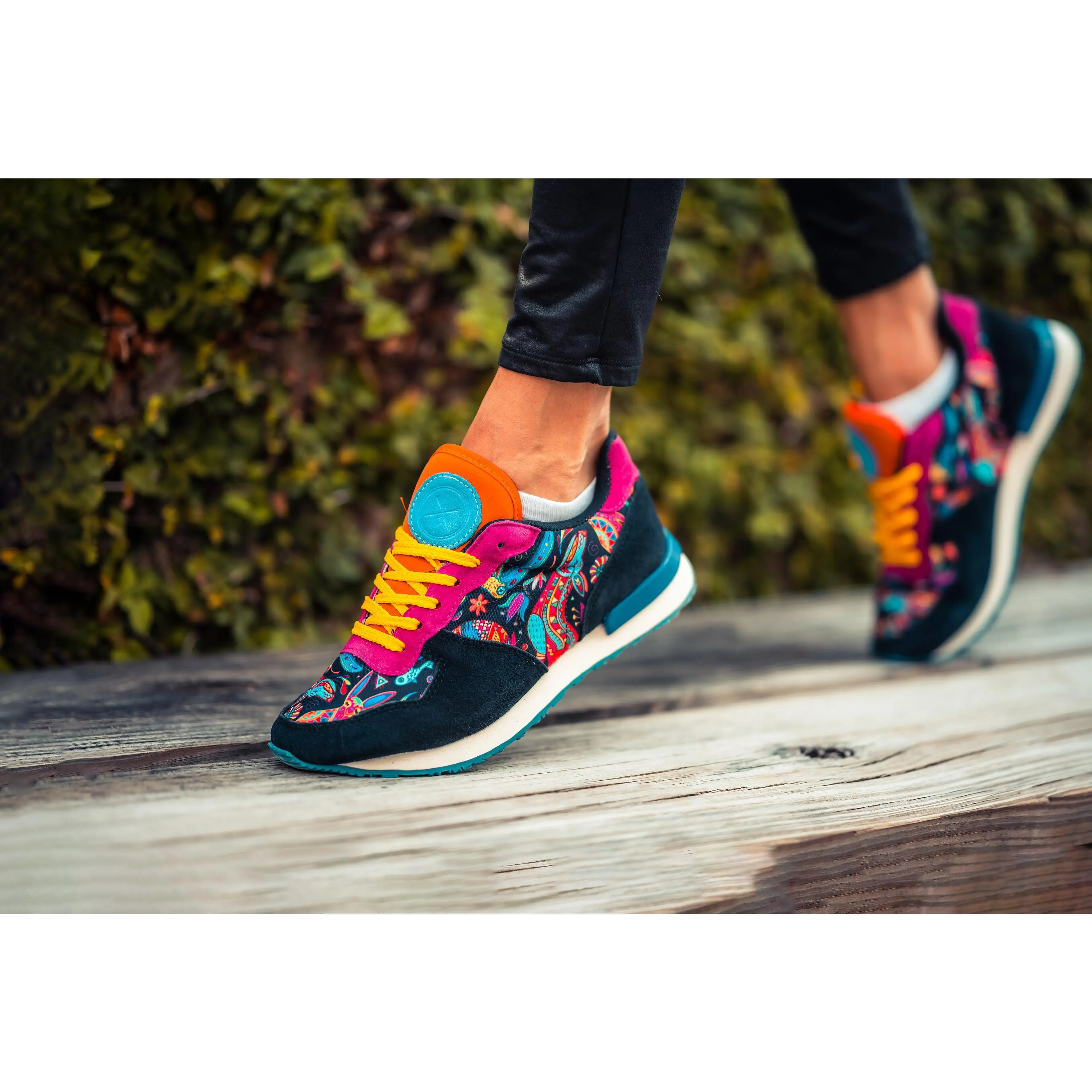 Very nice colorful pattern with the black tennis shoe.