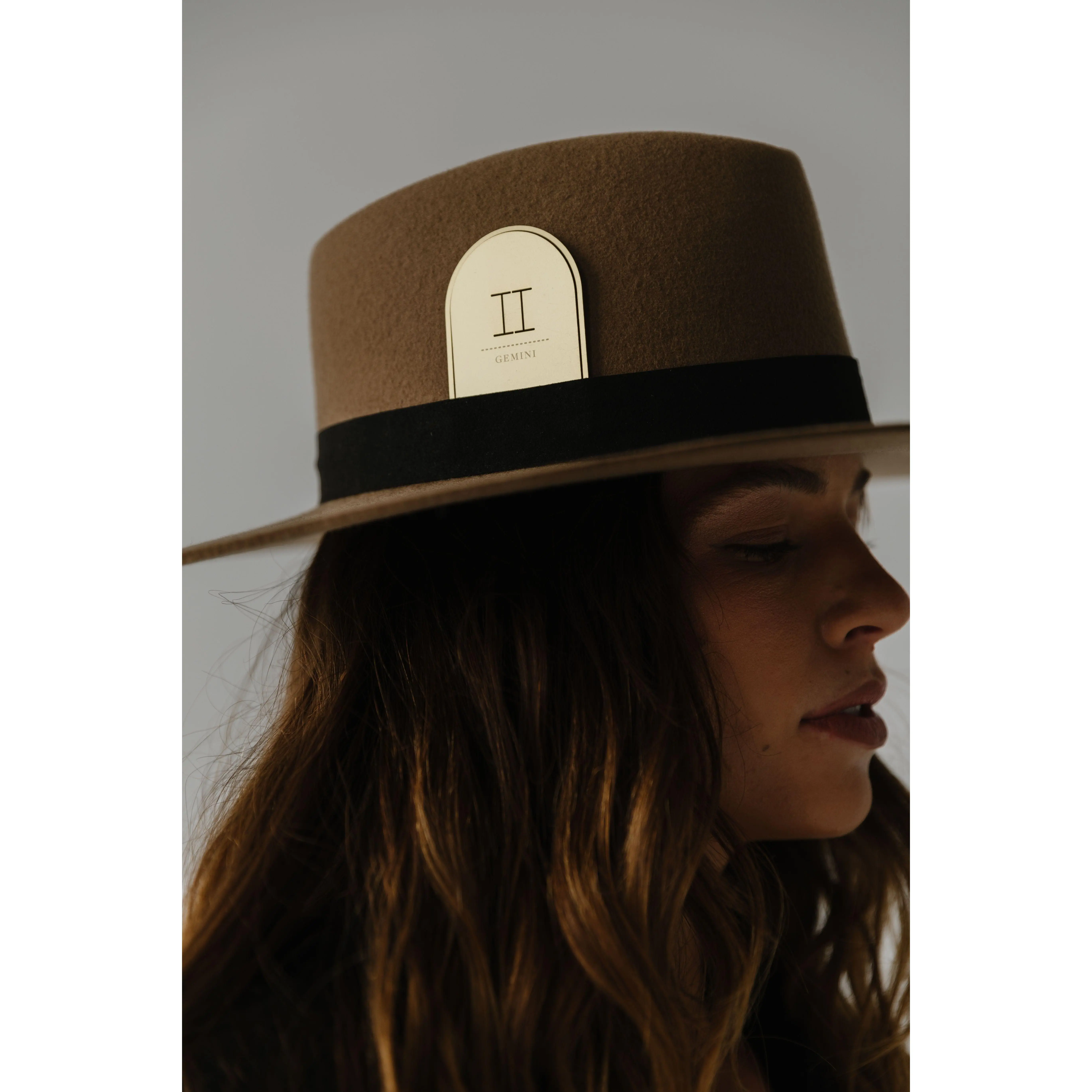 Laser cut gold metal cards to fit into your hat band. This edgy and unique accessory gives you a fun way to confidently show the world who you are.
