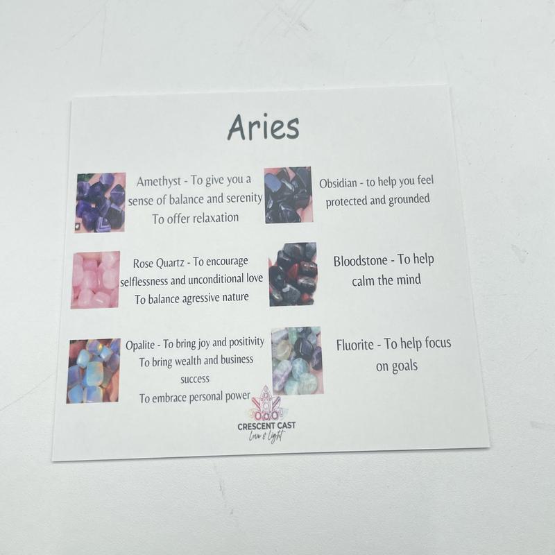 Each pack contains 6 hand-selected crystals tailored to the unique qualities of each zodiac sign. For example: