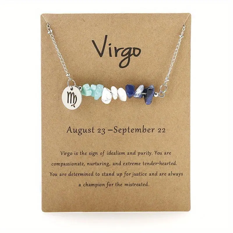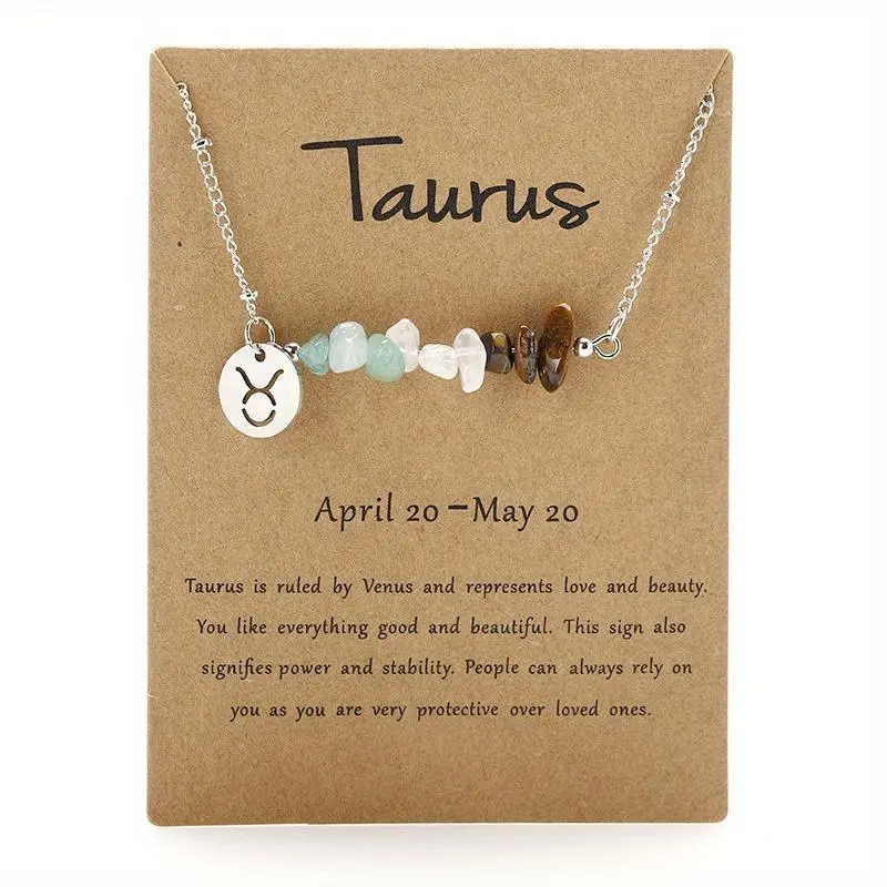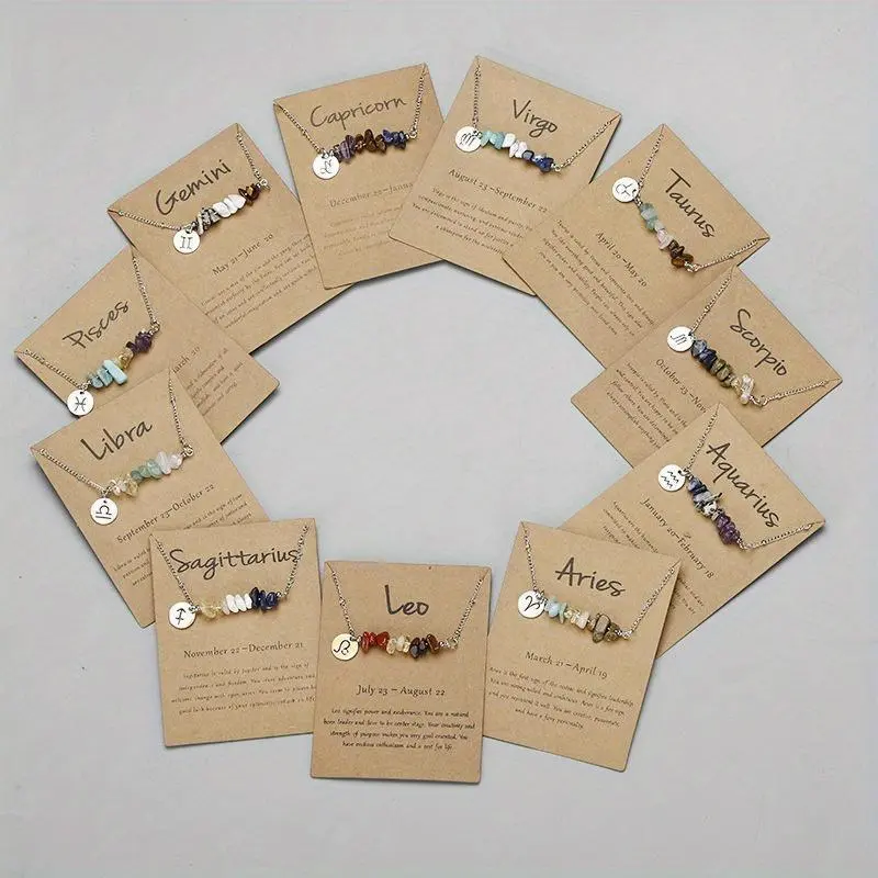 5. 12 Zodiac Signs Pendant Necklace with Natural Stone Beads - Versatile Casual Attire for Women jewelry chain jewelry lovers simple necklace