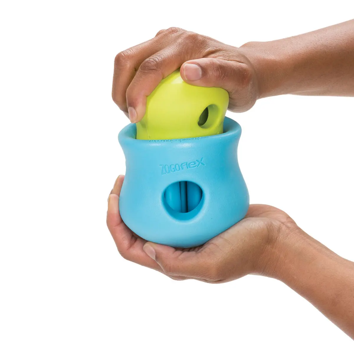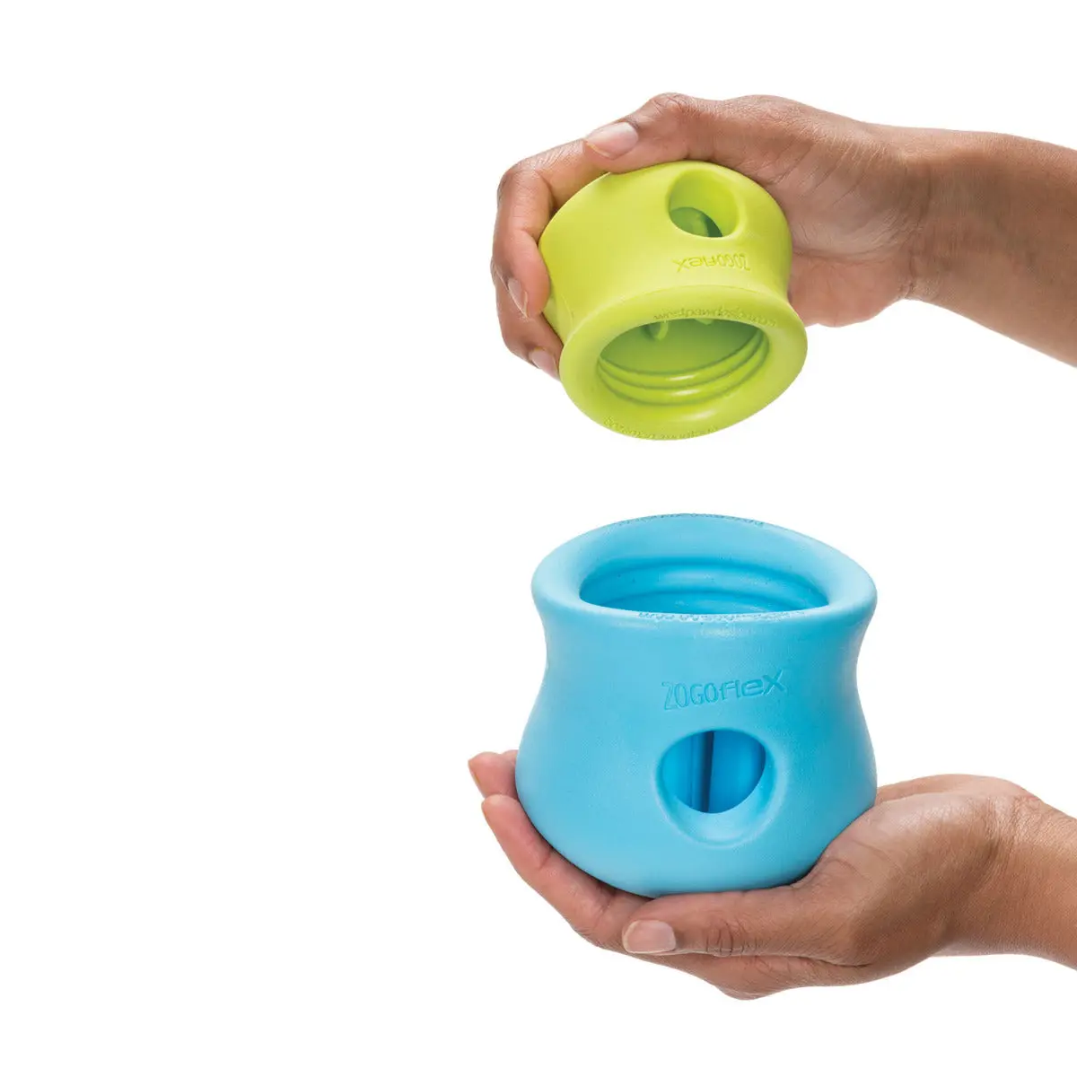 Zogoflex Toppl by West Paw does it all. Our best-selling customizable puzzle and treat toy is designed to be filled with a dog's favorite kibble or treats. Toppl's soft, rounded inner 'teeth' contain a contoured cavity to hold treats in place until your dog nudges them out.
