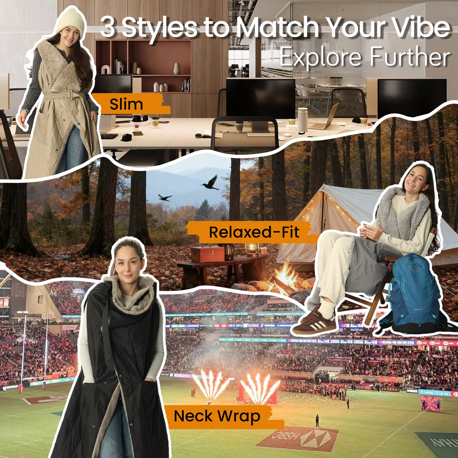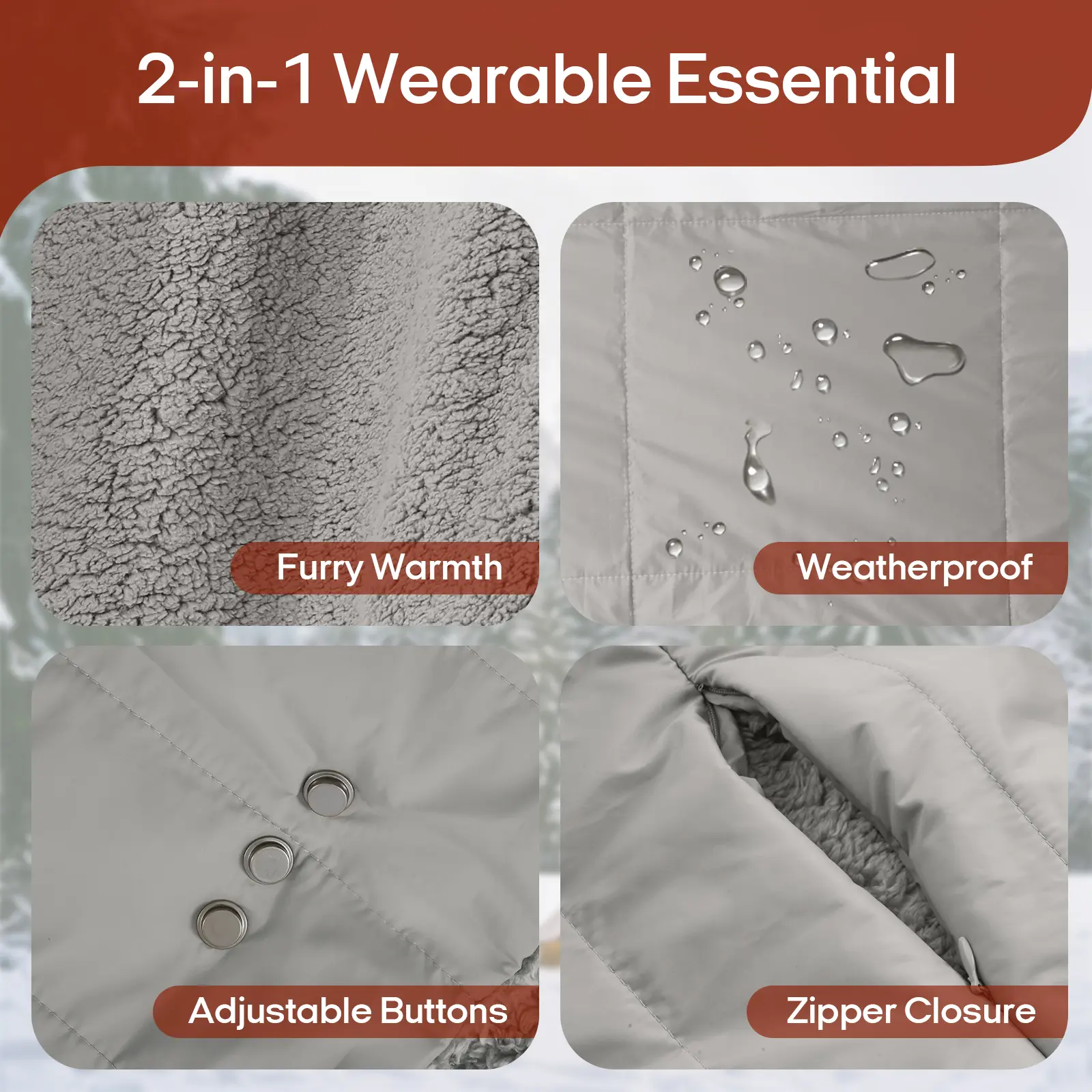 4. 2-in-1 Wearable Design: Zipper & Snap Closure Transform your blanket into a stylish poncho instantly. Featuring a secure zipper closure (an upgrade from simple snaps) plus adjustable buttons, it stays firmly in place while you move. This hands-free design allows you to cook at the campsite, cheer at the game, or work on your laptop with ease.