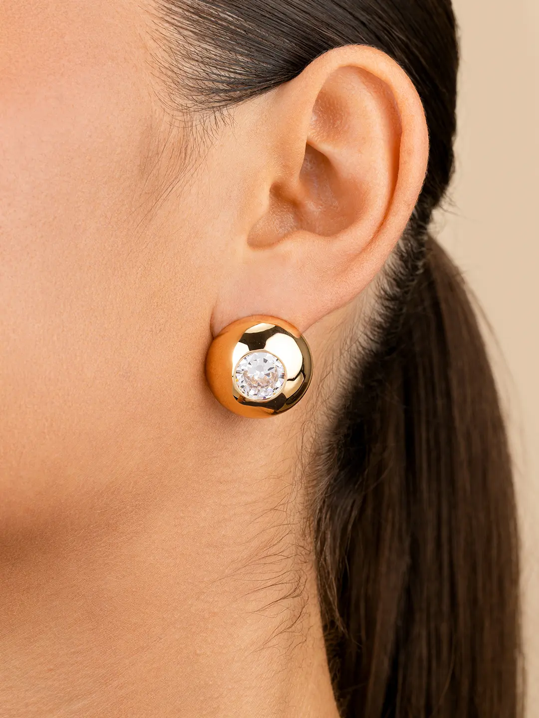 Add a touch of luxury to your outfit with our Zora CZ Dome Studs. Featuring a large center CZ and a chunky dome design, these studs exude sophistication and exclusivity. Elevate your style and make a statement with these exquisite earrings.