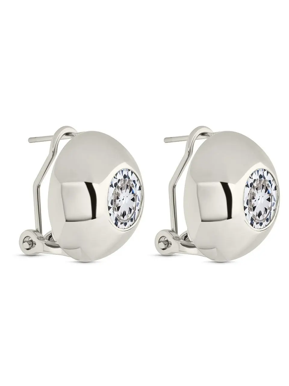 Zora CZ Dome Studs in sliver. Perfect to wear to a wedding or date night. The studs are not heavy at all.