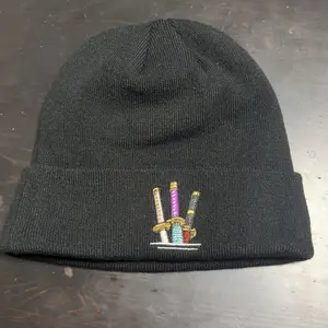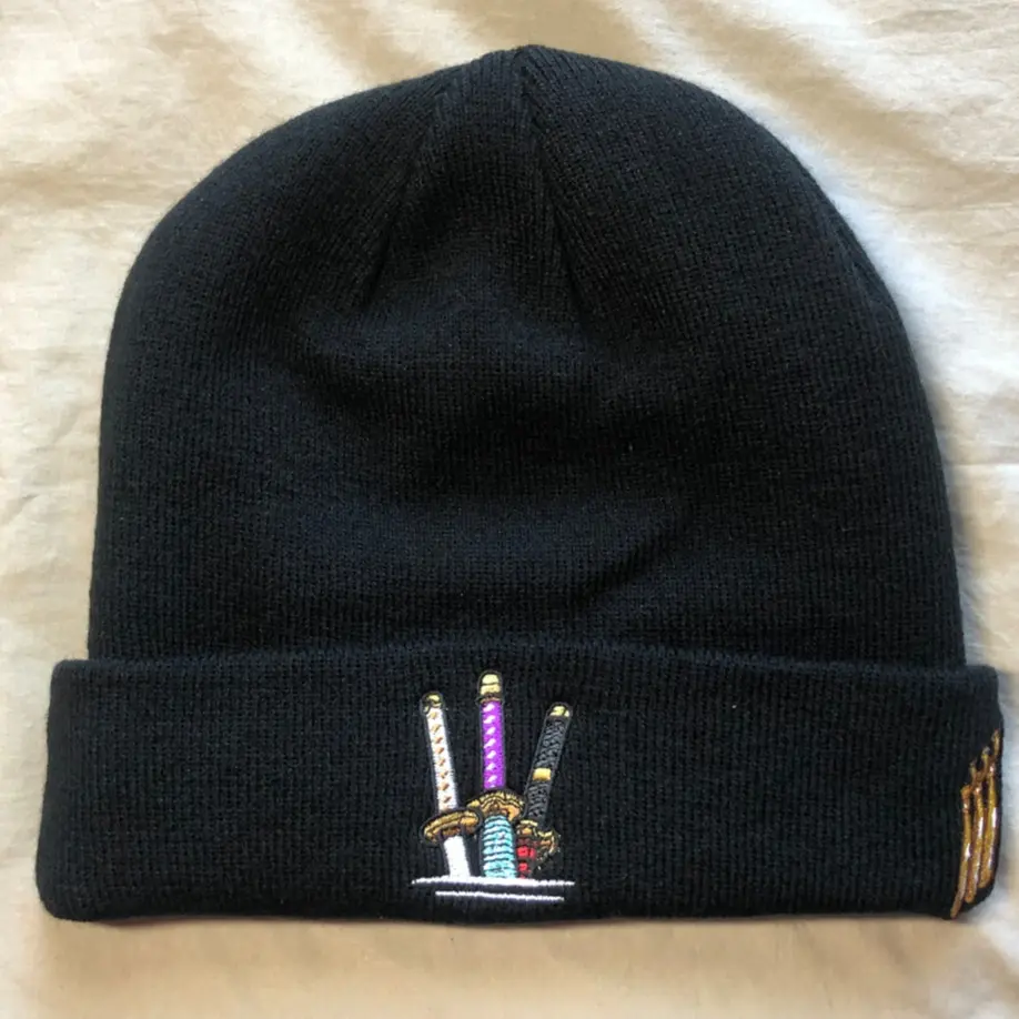 Featuring three embroidered swords on the front and signature earrings stitched into the sides, this beanie embodies strength, loyalty, and resilience. A striking accessory for any fan of Zoro. Perfect for those who resonate with power, resilience, loyalty, or determination.