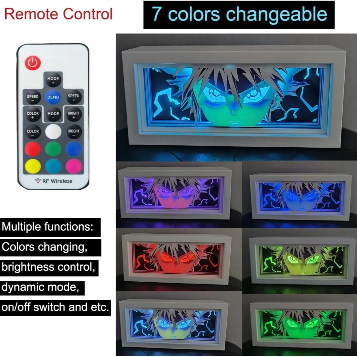 Japanese Anime 3D Light Box Manga Shadow Box Frame Led Lights, Multi Color (Gojo)