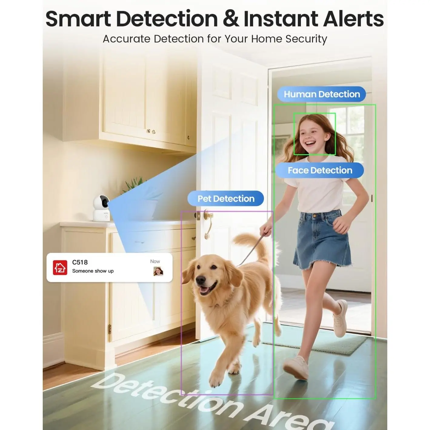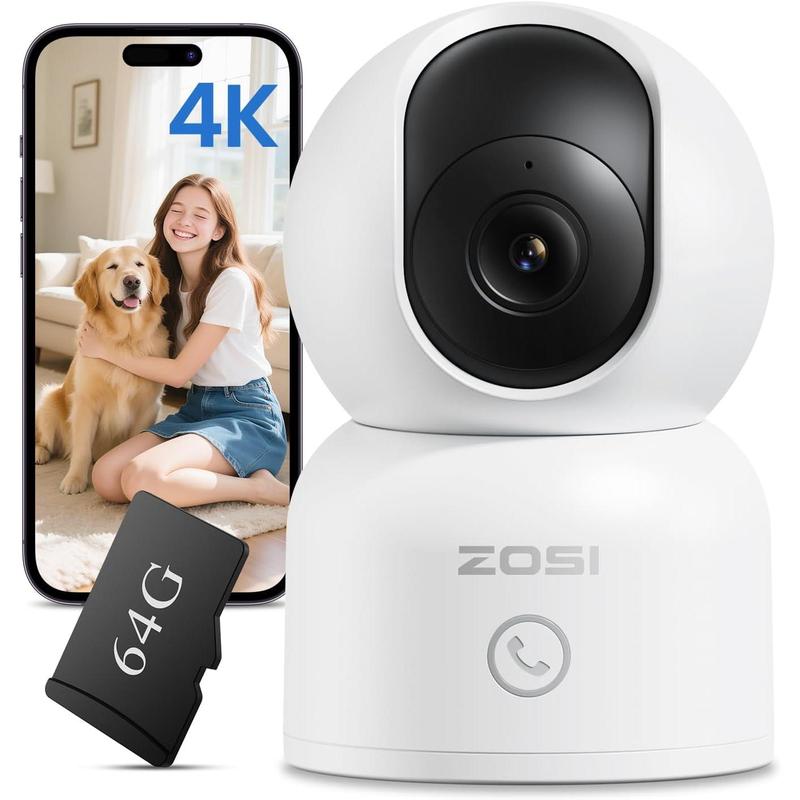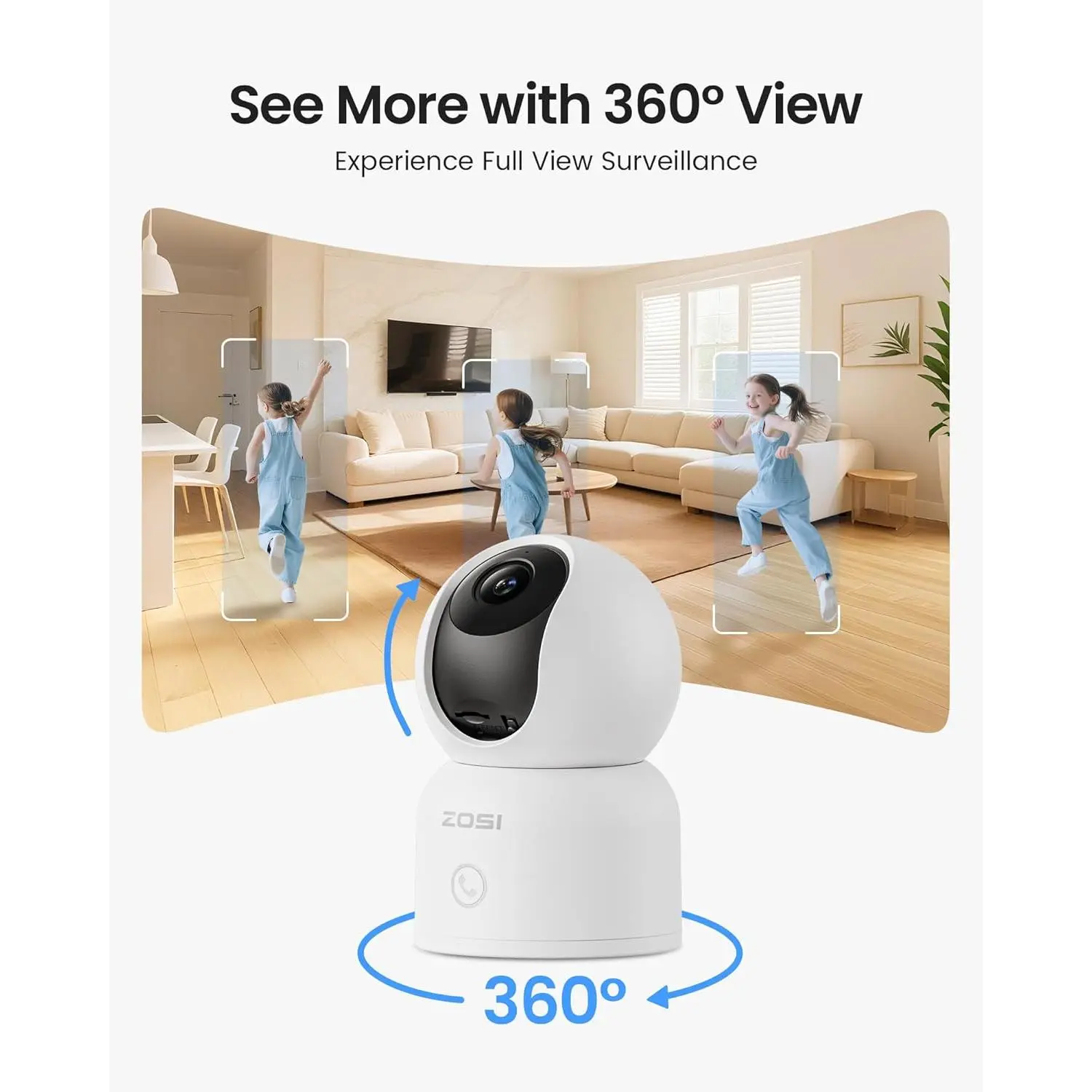 ZOSI 4K Indoor Security Camera C518 Pan/Tilt Pet/Dog/Nanny Plug-in Wifi Camera with Auto Tracking AI Detection 360° View Night Vision 2-Way Audio 5GHz/2.4GHz WiFi 64G Memory Card Included Button Installation