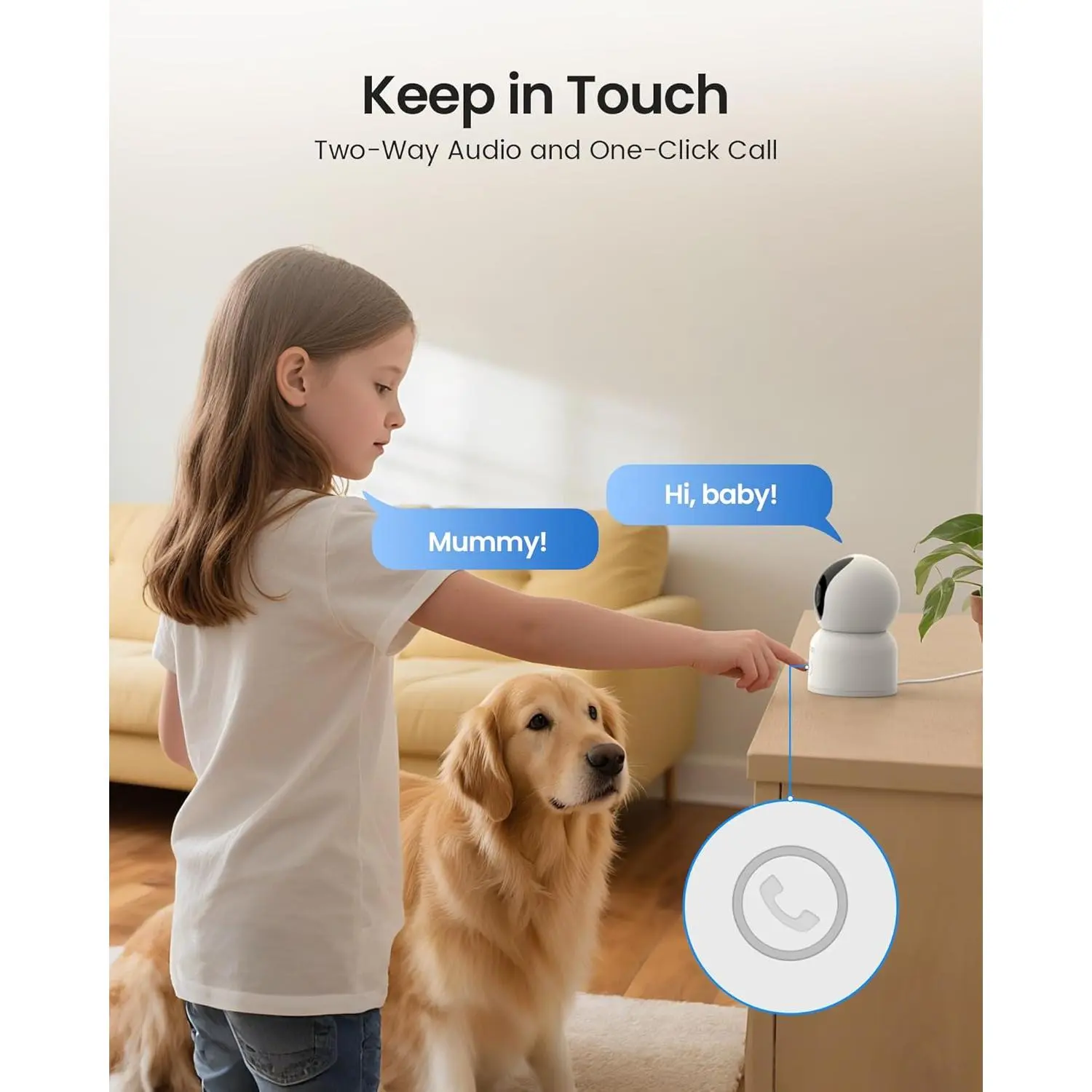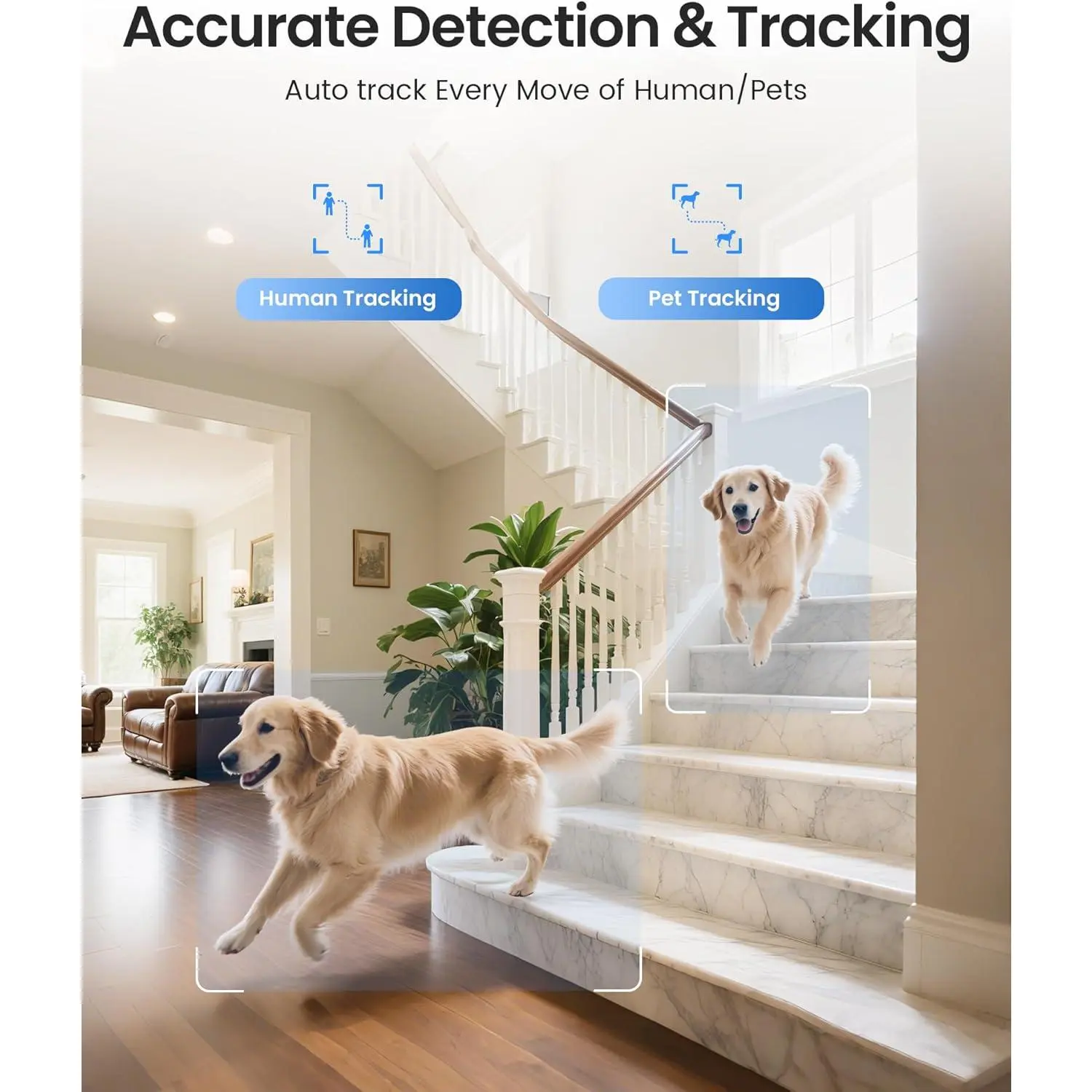 -human, pet, and area detection reduce false alarms. The camera follows movement automatically. The 64GB memory card supports up to 256GB for secure storage. Stay connected with pets or kids using the built-in microphone and speaker.